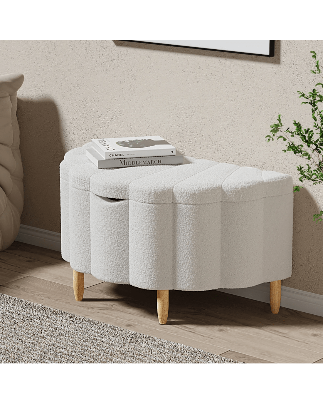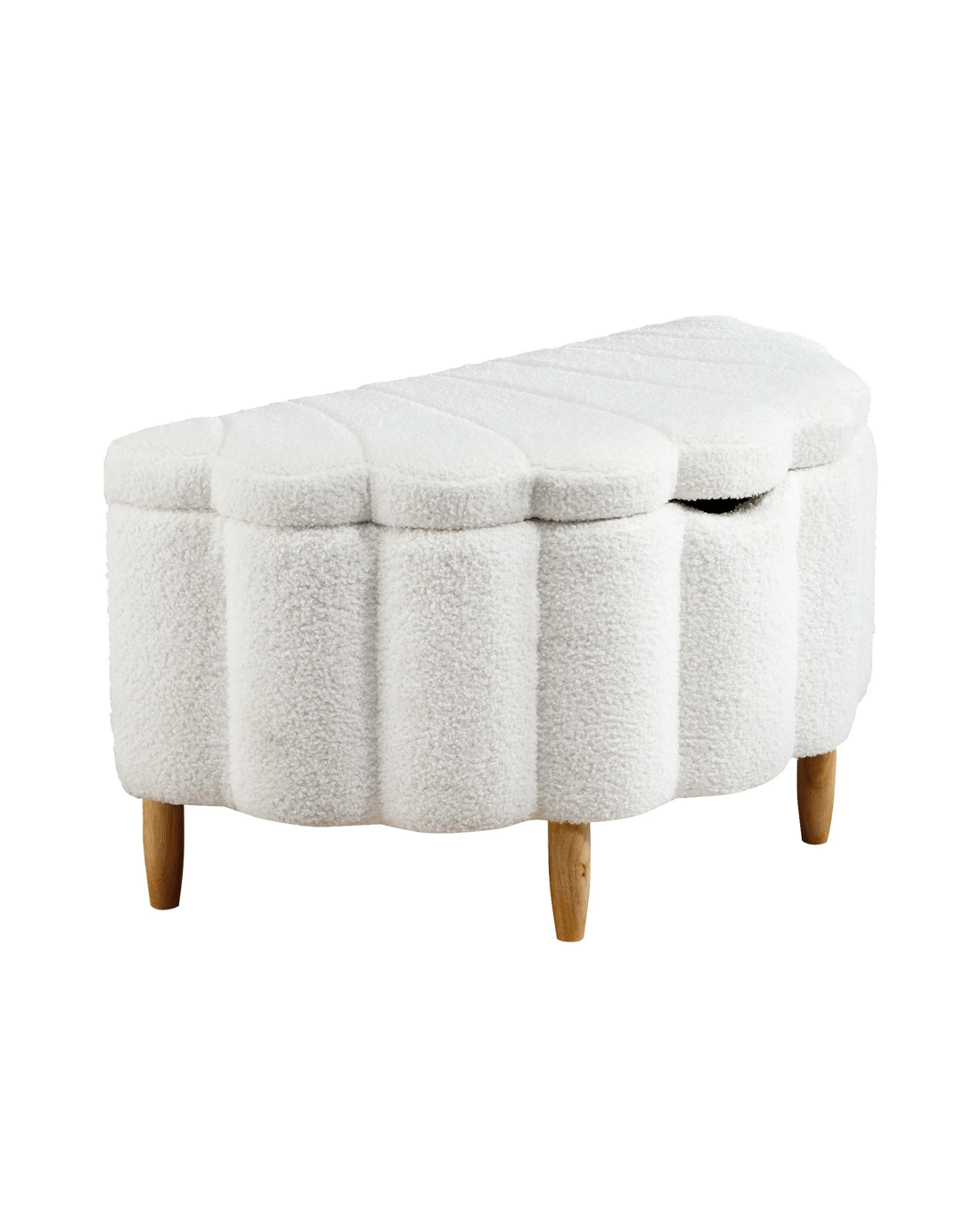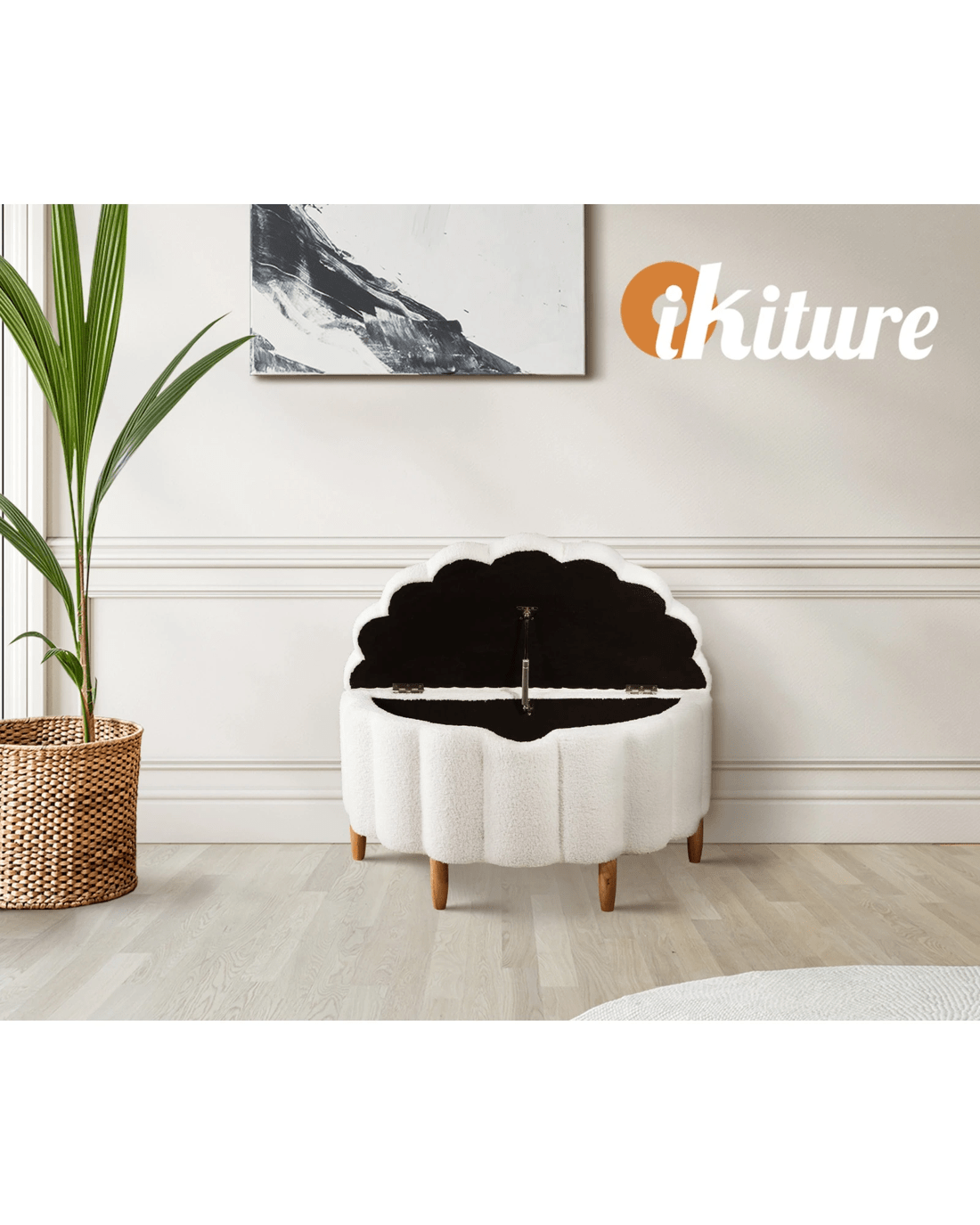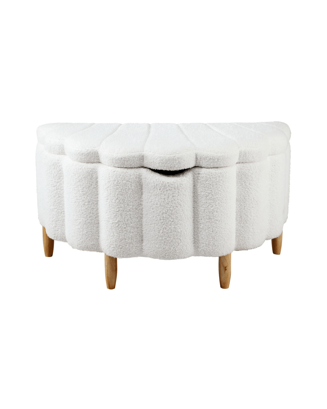 Oikiture Storage Ottoman Scallop Boucle Blanket Box Fleece Foot Stool Seat Chest - White