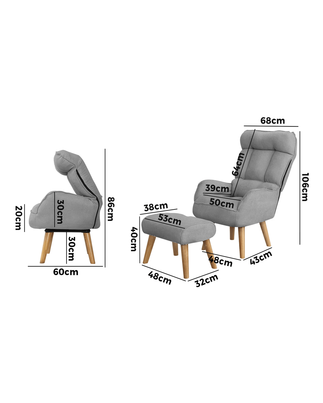 Armchair dimension: 68cm x 60cm x 106cm
