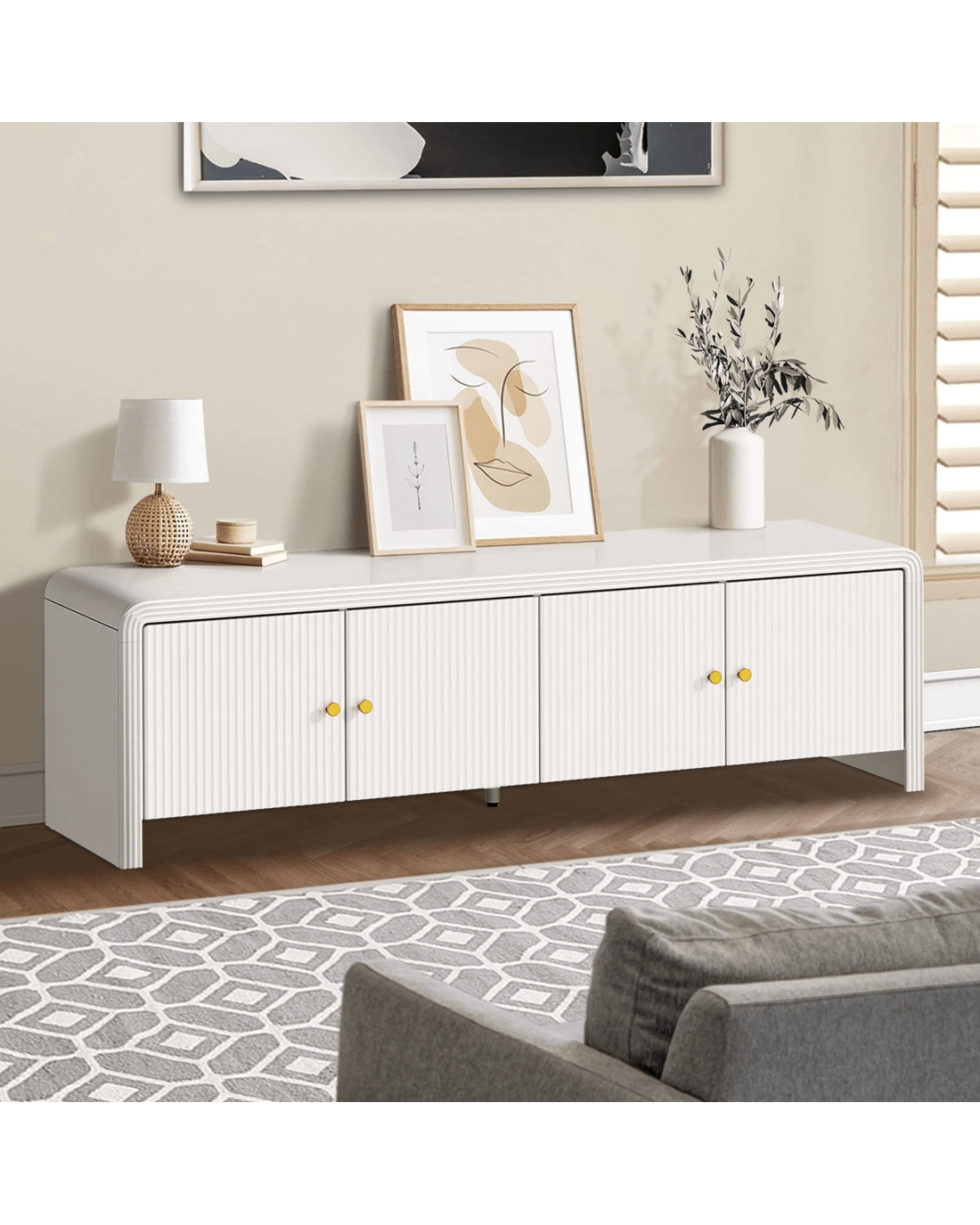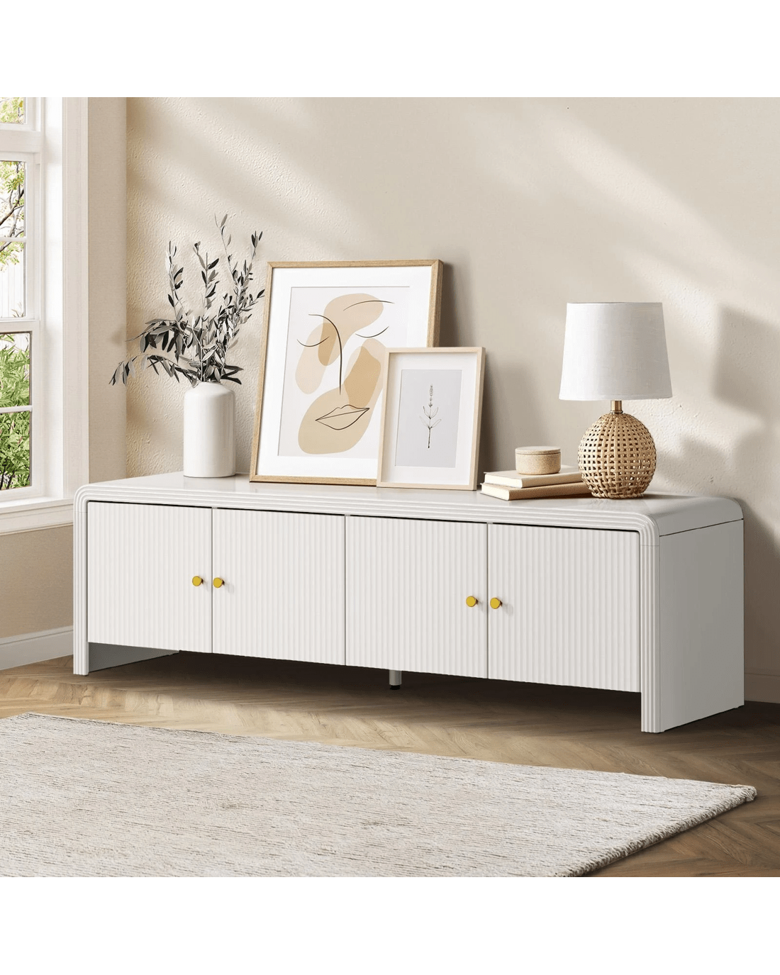 Plus, the long linear top also offers acres of real estate to house your smart TV (up to 60 inches) and an assortment of hi-fi equipment and personal mementos and collectibles to showcase your passionate interests and well-storied lifestyle.