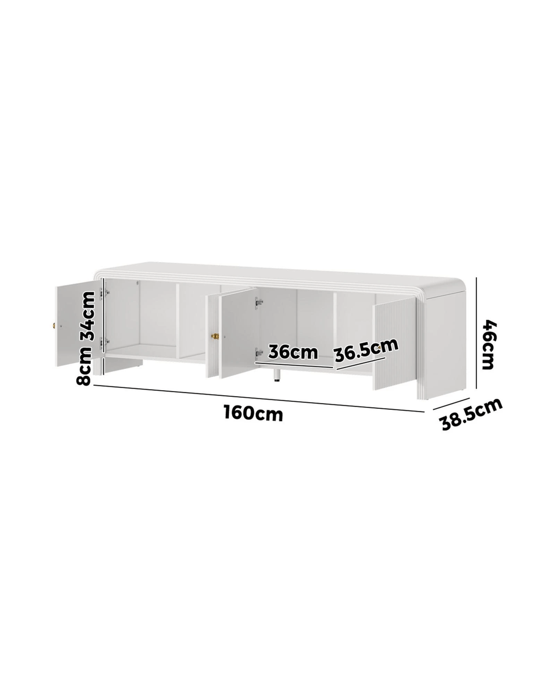 The two cabinets, featuring two compartments within each cabinet, are cavernous with plenty of room for all your entertainment paraphernalia and still have room left enough for other home essentials. And with its wide line-motifs doors with round aluminium alloy handles, using the cabinets is effortless in storing and retrieving items with plenty of movement space. The fully-enclosed rear also ensure all storage is well kept clean and without any accidental items fall outs from the back.