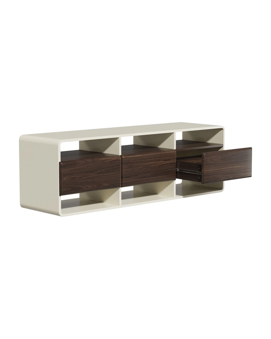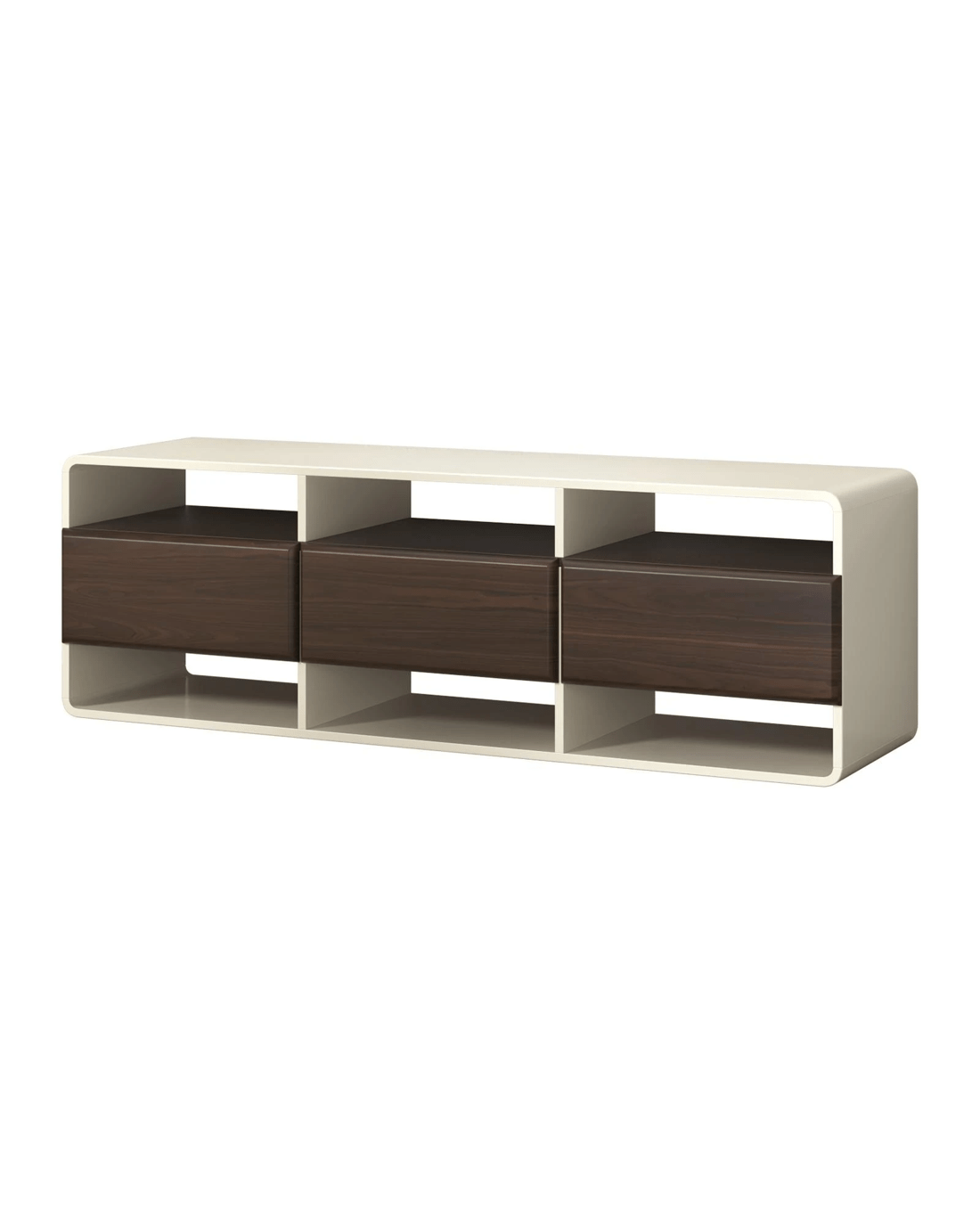 The three central drawers, with attractive woodgrain-like fronts, are blessed with ample space whilst the handle-free design makes for easy opening and closing. The top and bottom open shelves further add more compartment storage opportunities for all your entertainment paraphernalia and still have room left enough for other home essentials. The fully-enclosed drawer rears also ensure all storage is well kept clean and without any accidental items fall outs from the back.