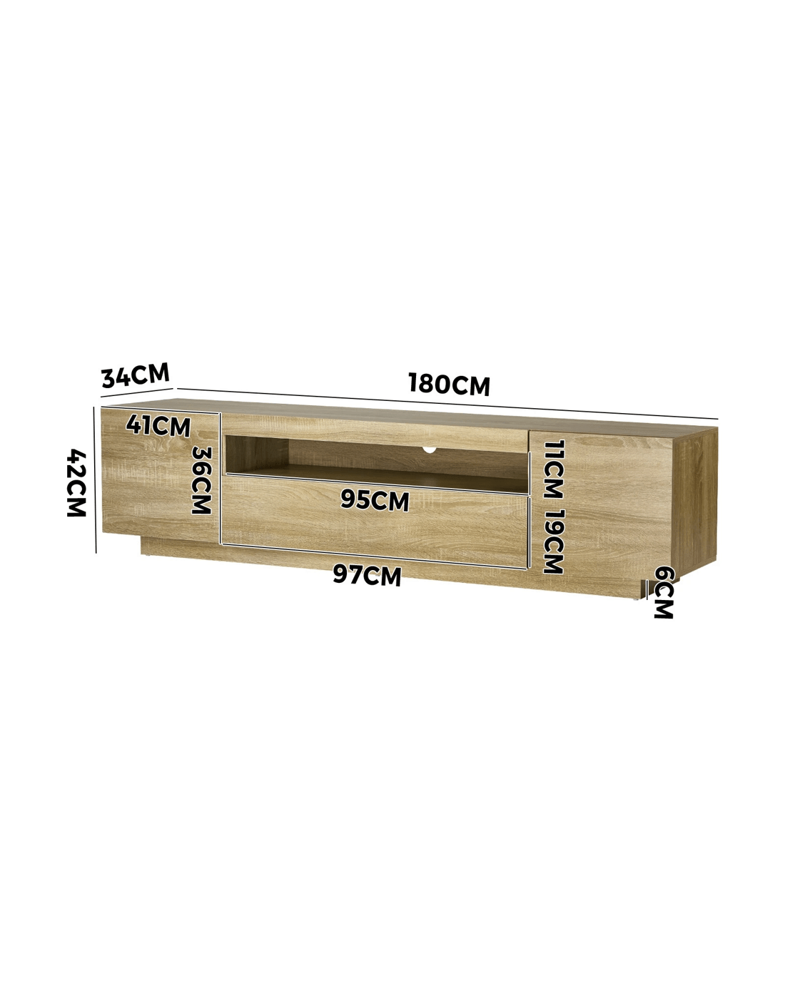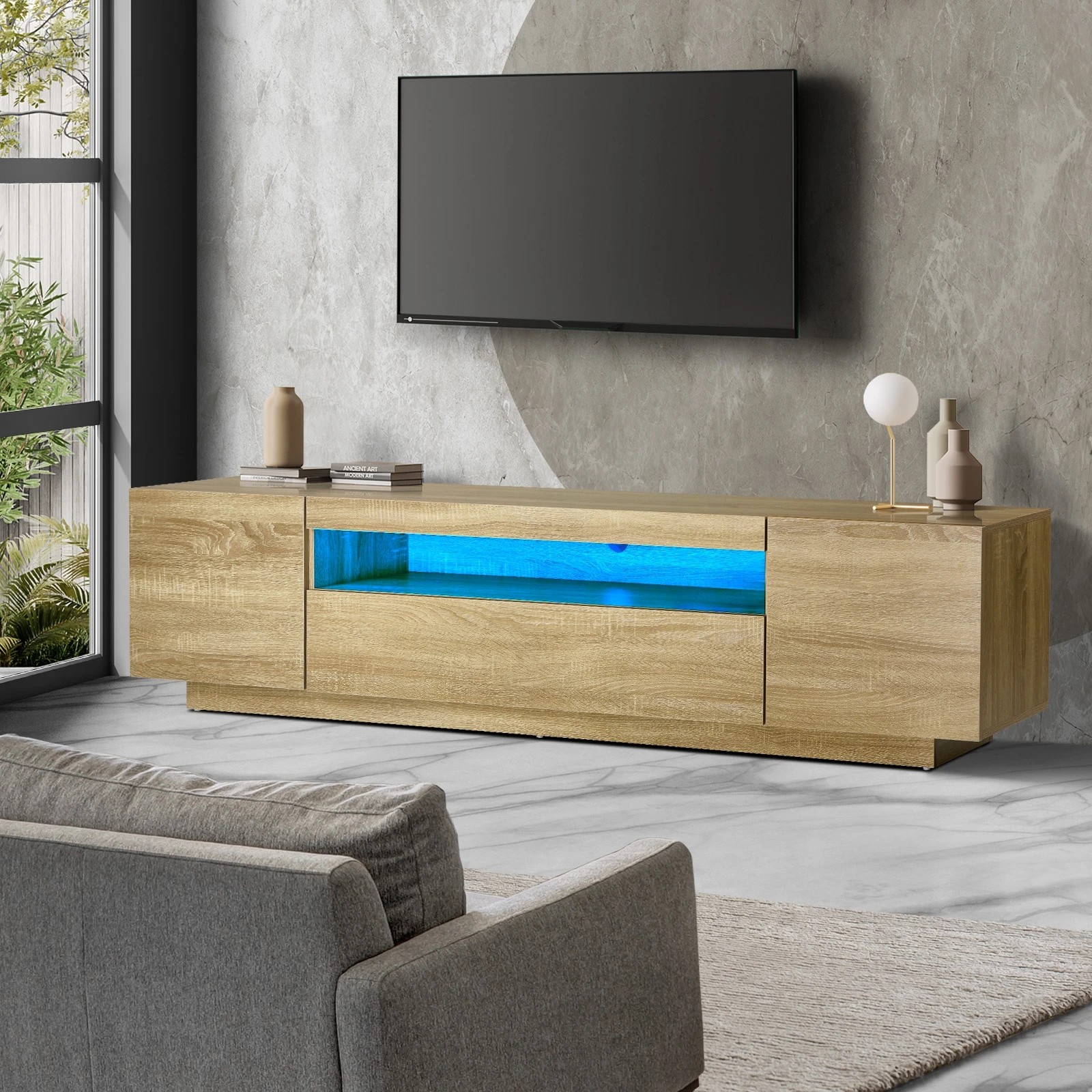 Oikiture TV Cabinet Entertainment Unit LED RGB 180cm - Natural
