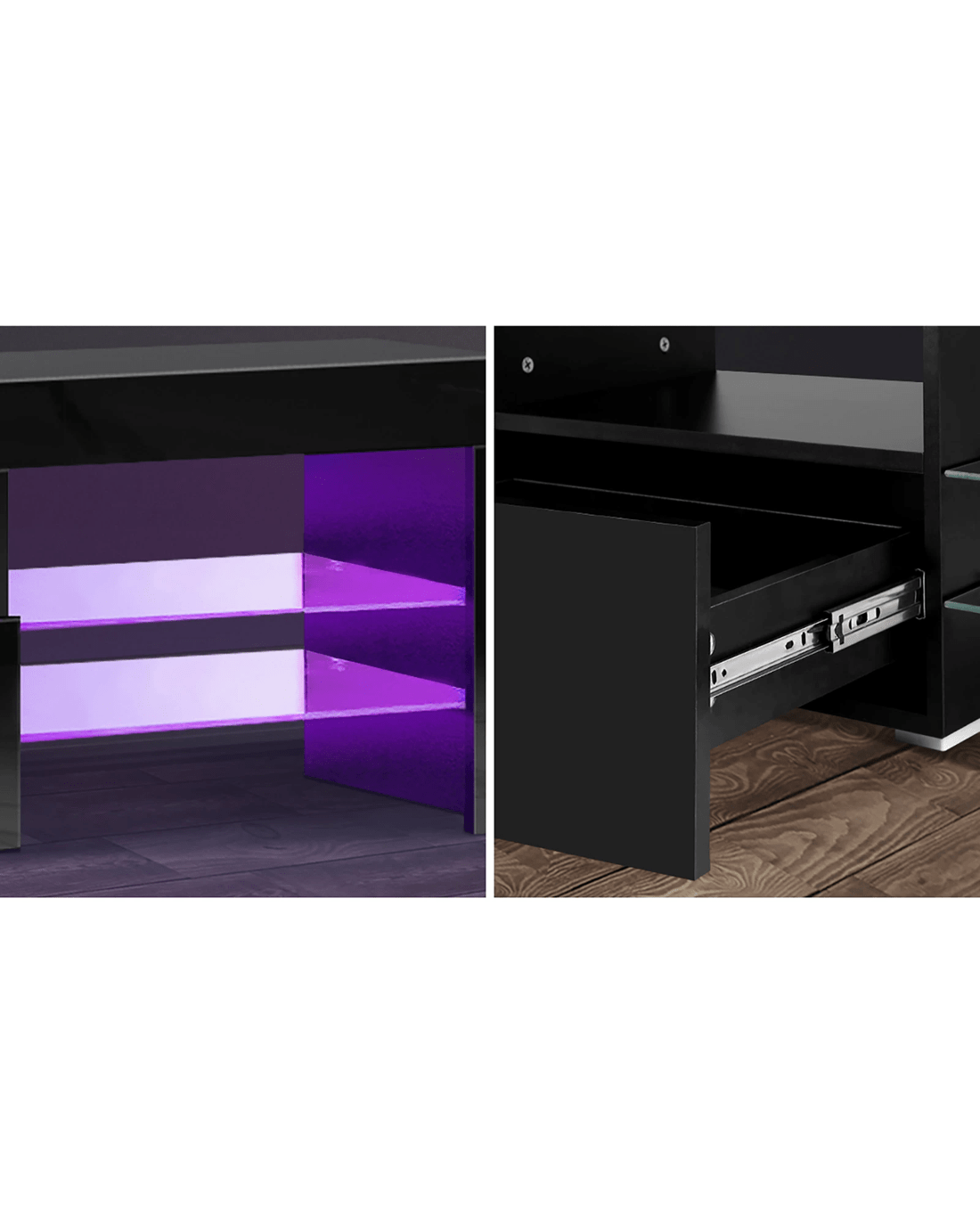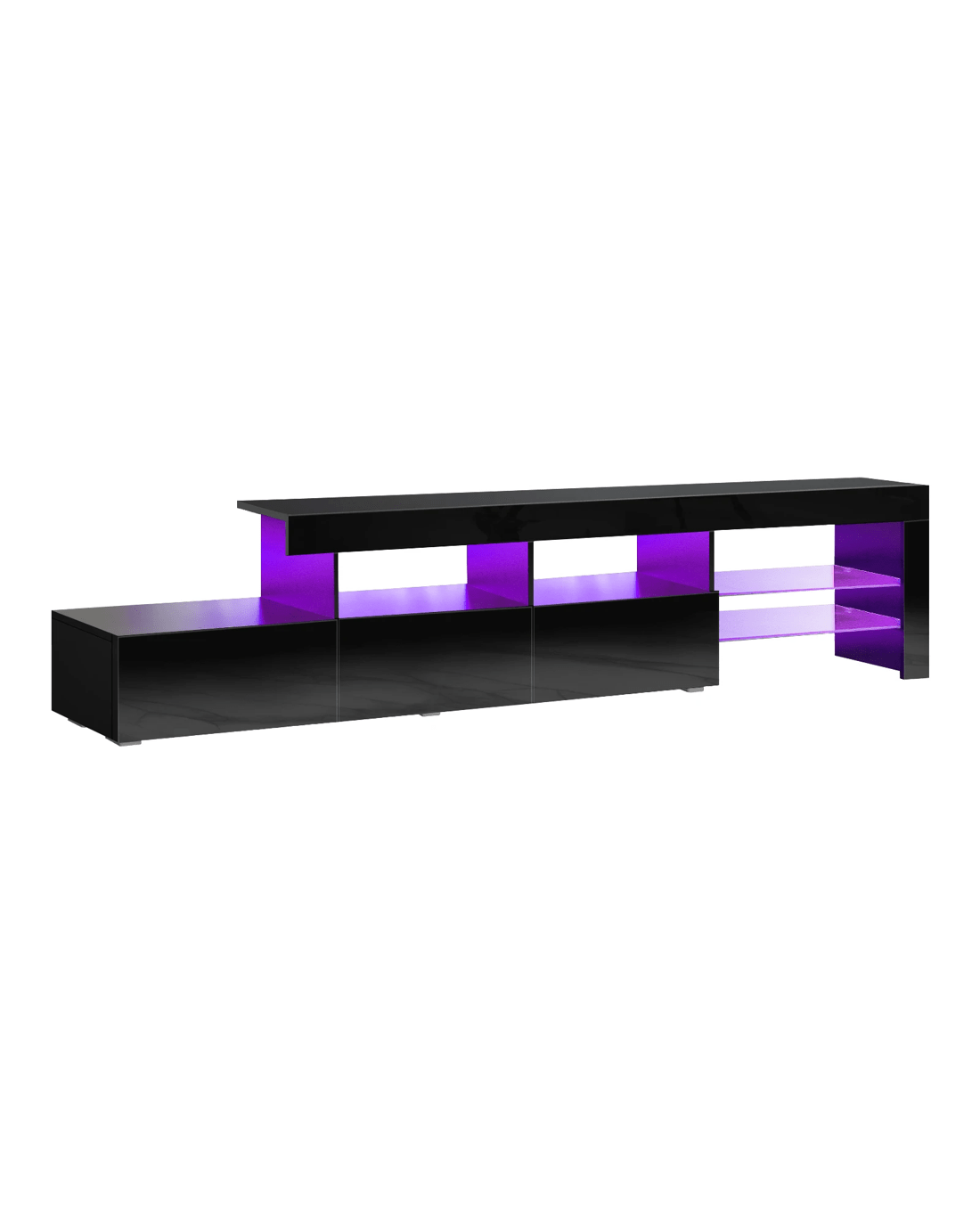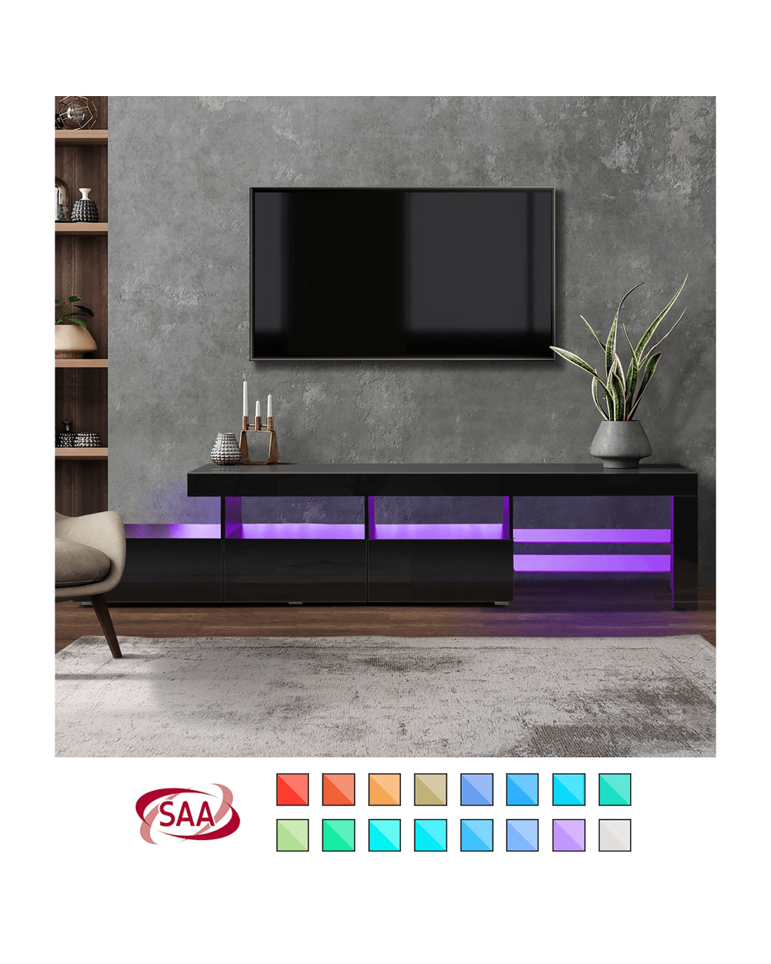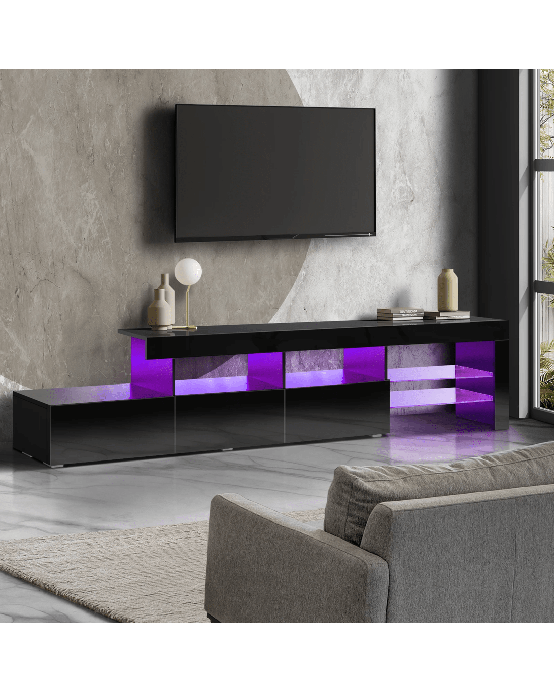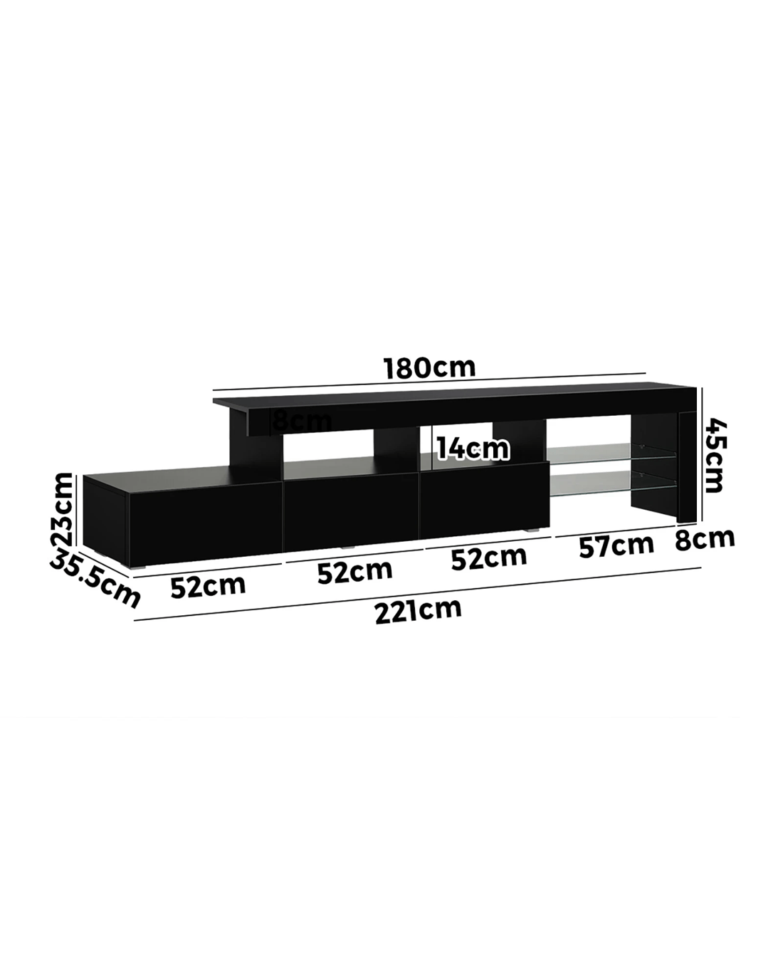 Oikiture Tv Cabinet Entertainment Unit Stand Rgb Led Gloss 220cm - Black