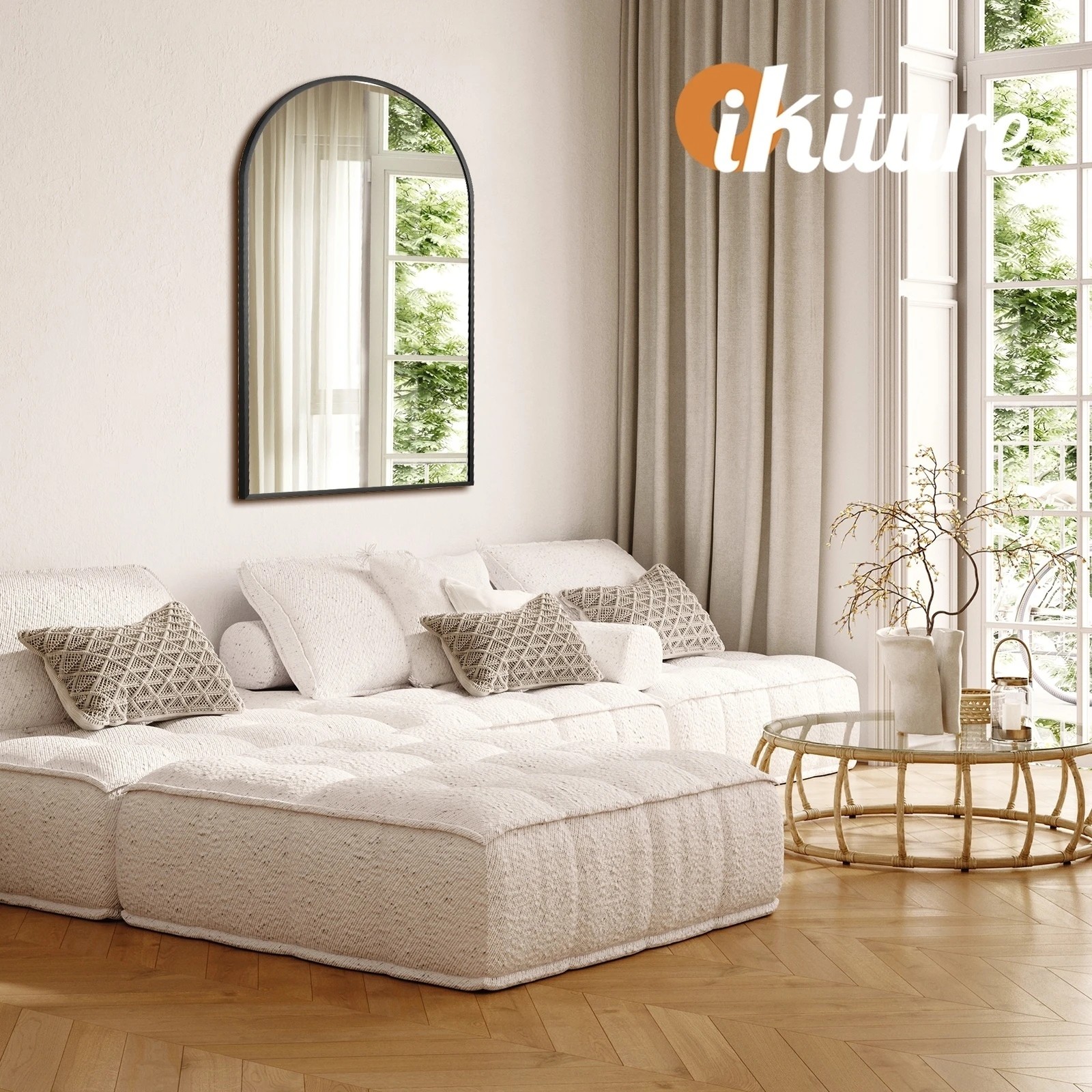 Oikiture Wall Mirrors 86x50cm Arched Makeup Mirror Office Home Decor - Black