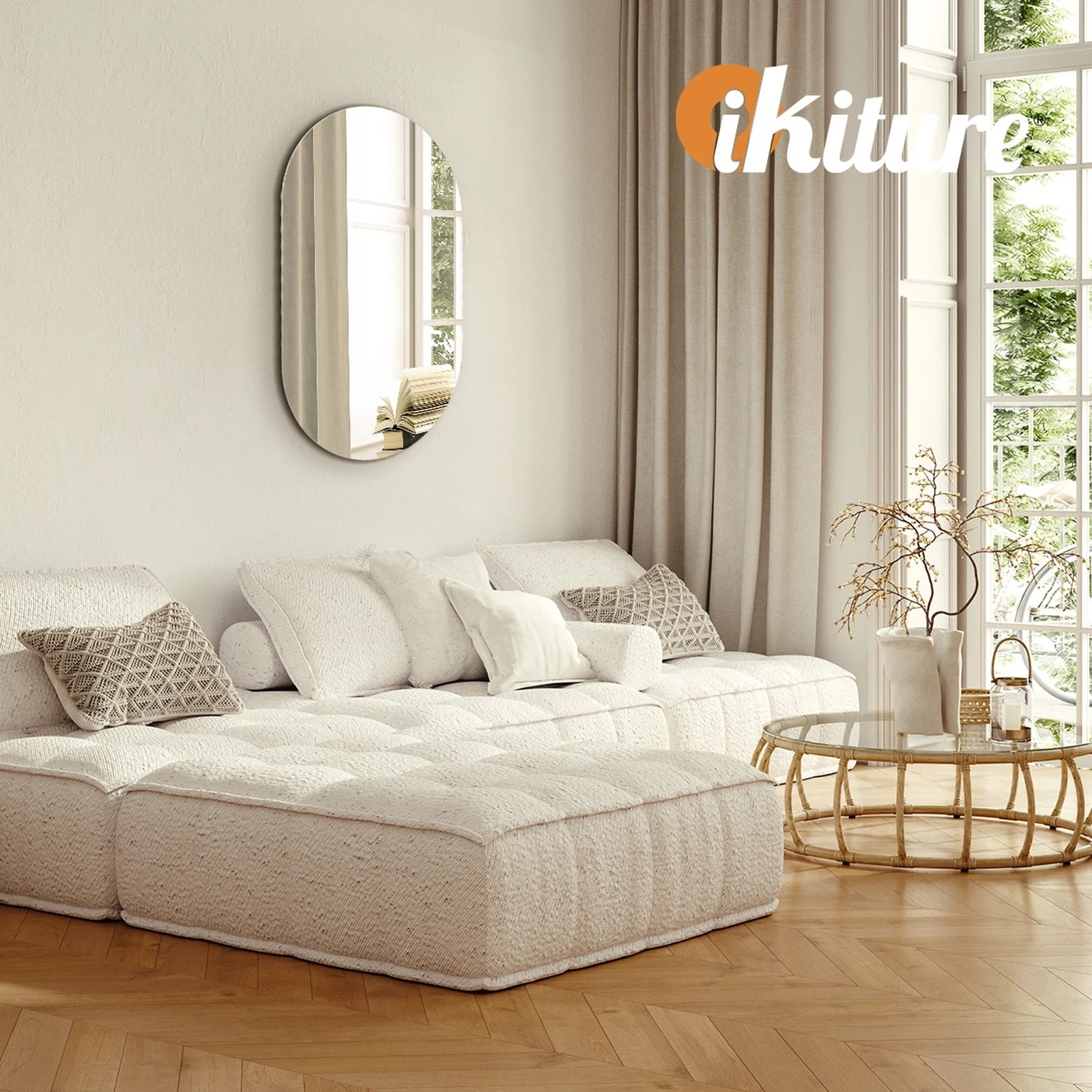 Oikiture Wall Mirrors Oval Makeup Mirror Bathroom Frameless 84x50cm - Clear