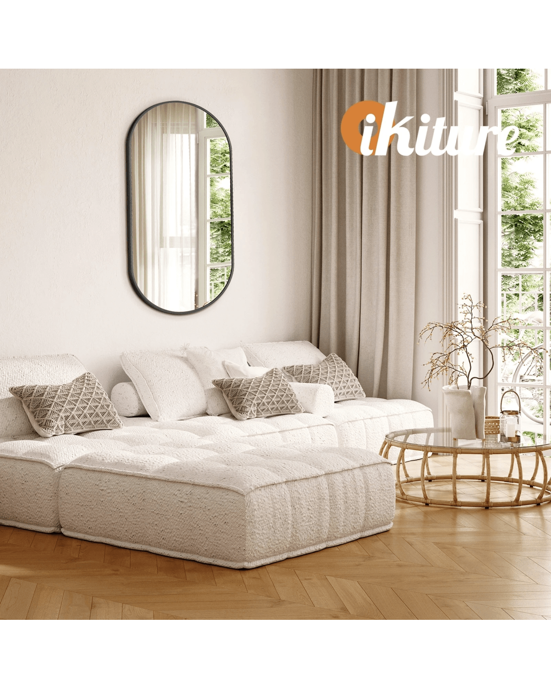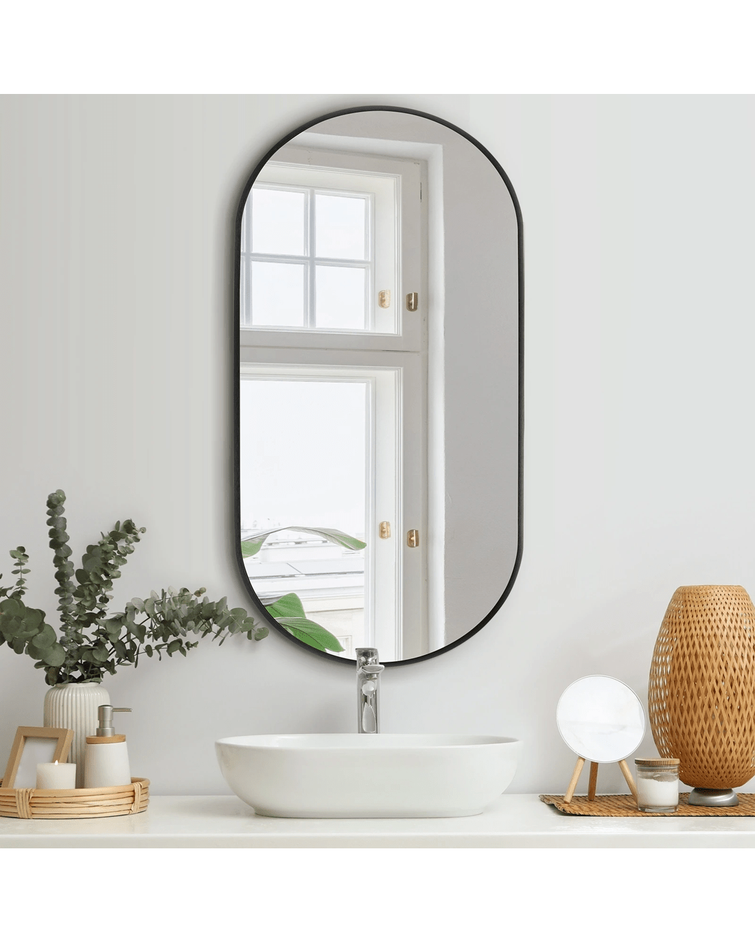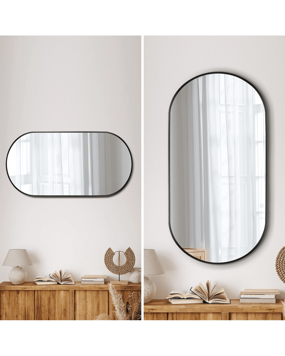 Oikiture Wall Mirrors Oval Makeup Mirror Bedroom Home Decor 84x50cm - Black