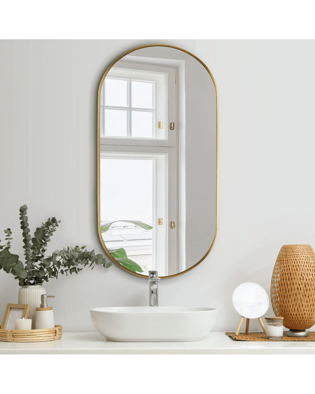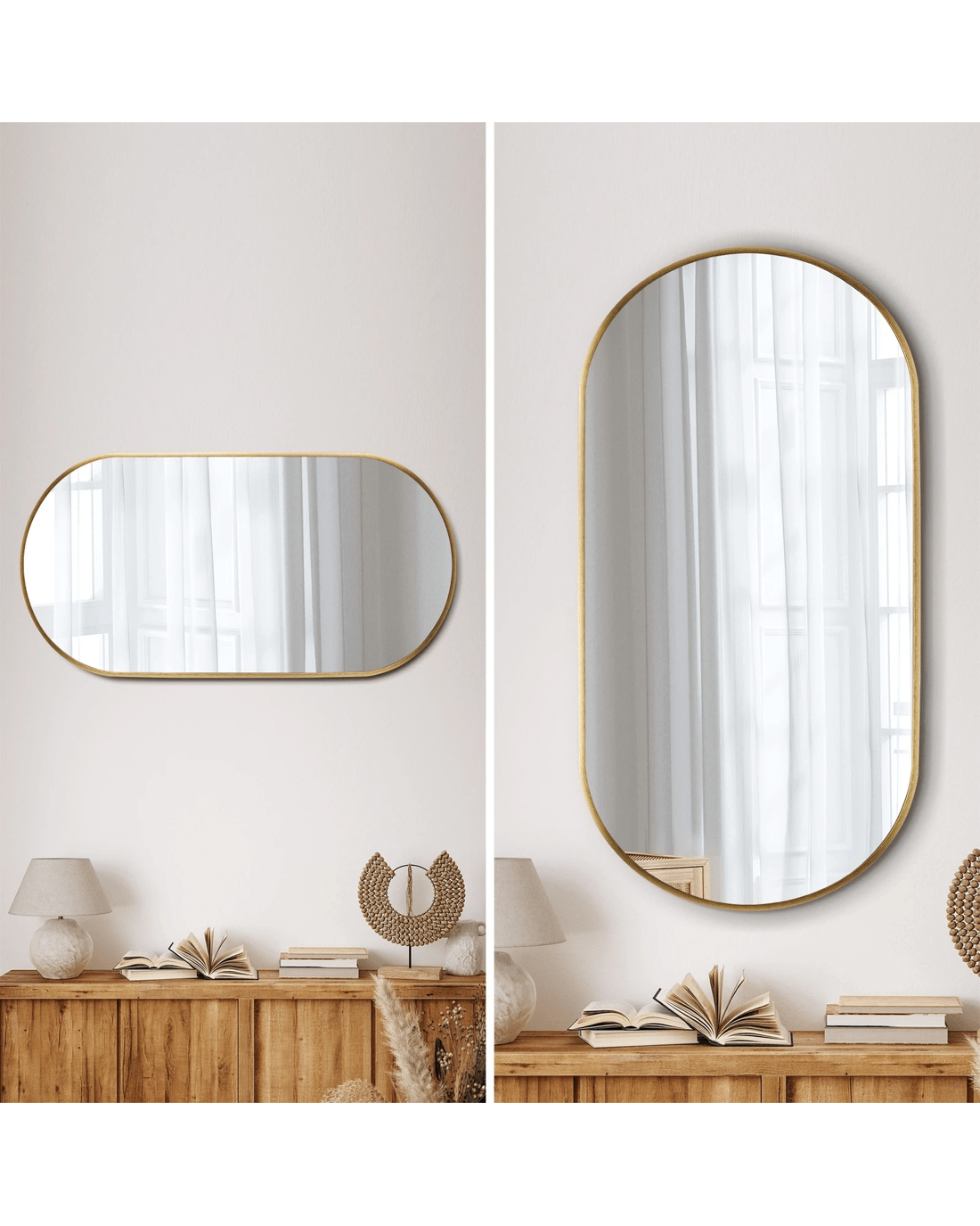 Sold by Kamprad's Oikos 1943Oikiture Wall Mirrors Oval Makeup Mirror Bedroom Home Decor 84x50cm - Gold