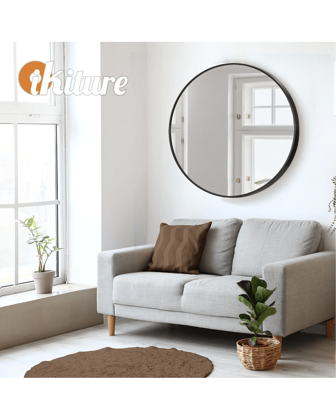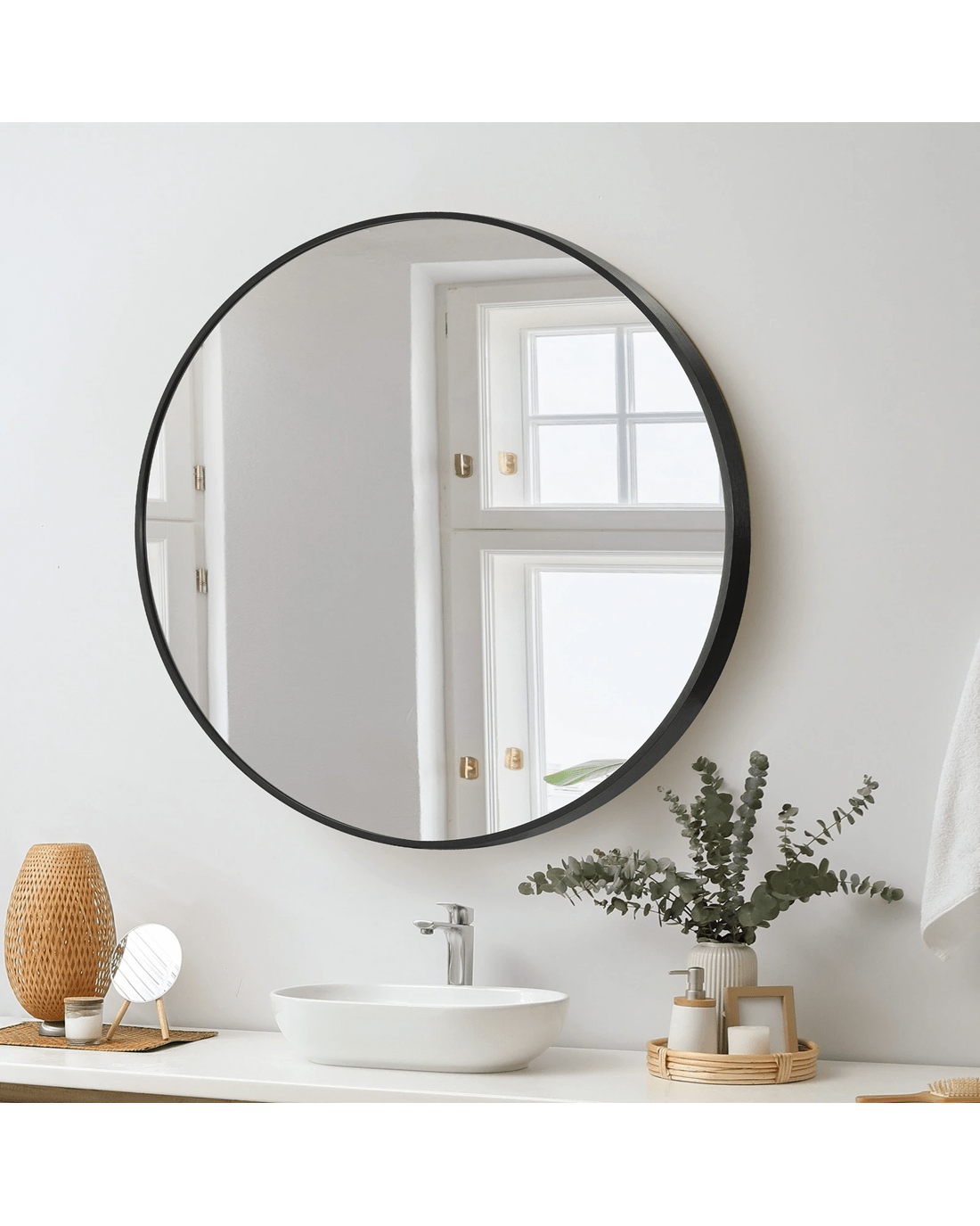 Sold by Kamprad's Oikos 1943Oikiture Wall Mirrors Round 70cm Makeup Mirror Vanity Home Decor Bedroom - Black