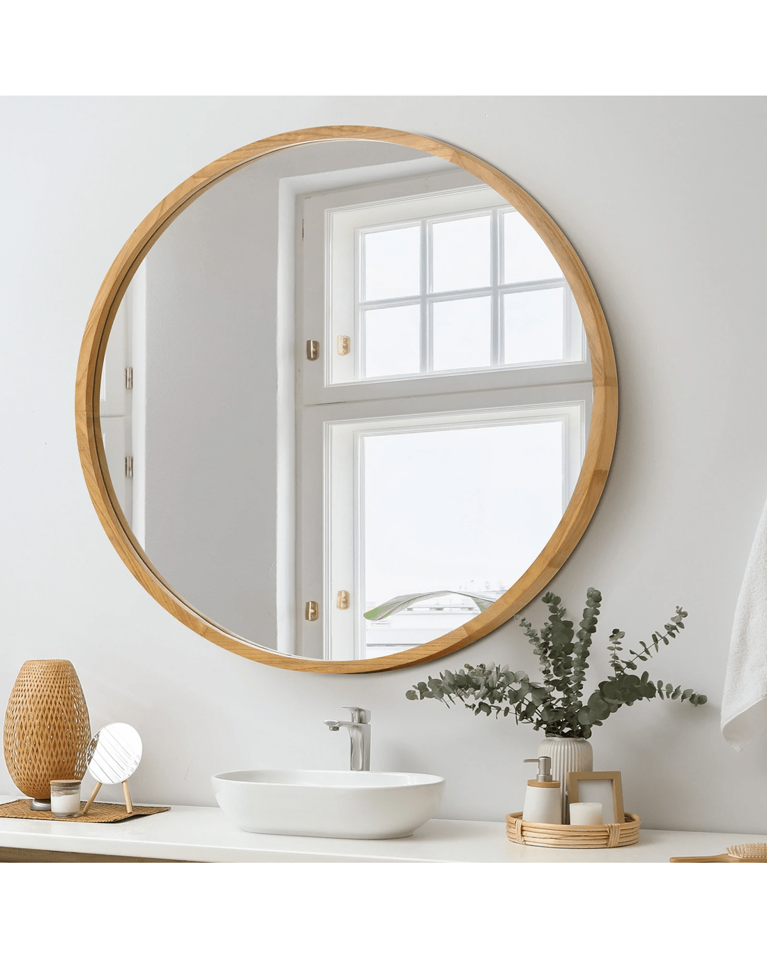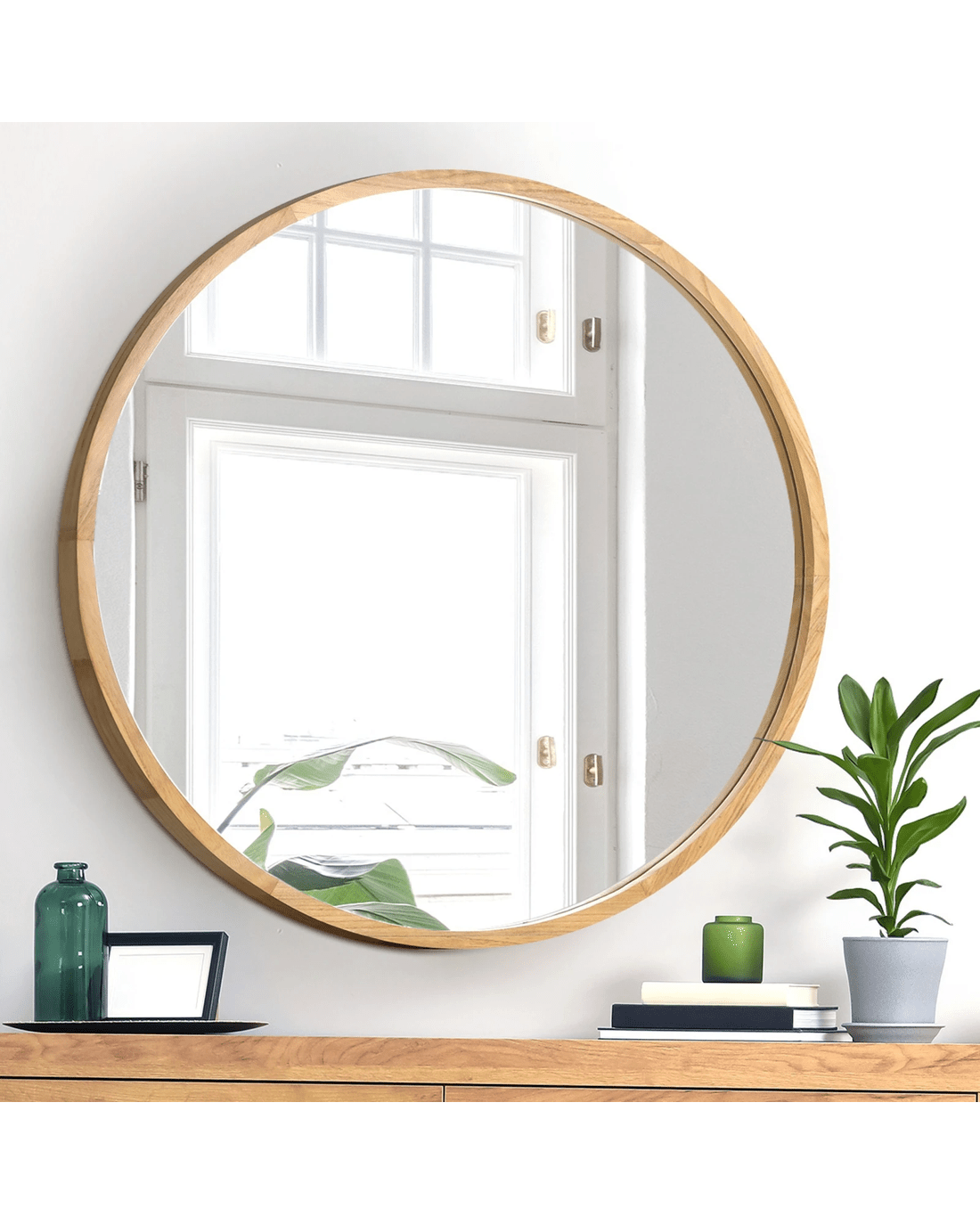 Elevate your home's decor and experience the timeless beauty of an round wall mirror by Oikiture. Order yours today and let your space shine with sophistication, style, and the natural allure of this exquisite wood.