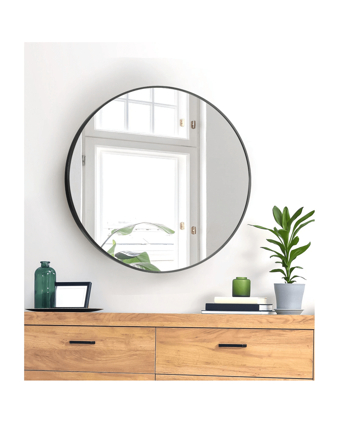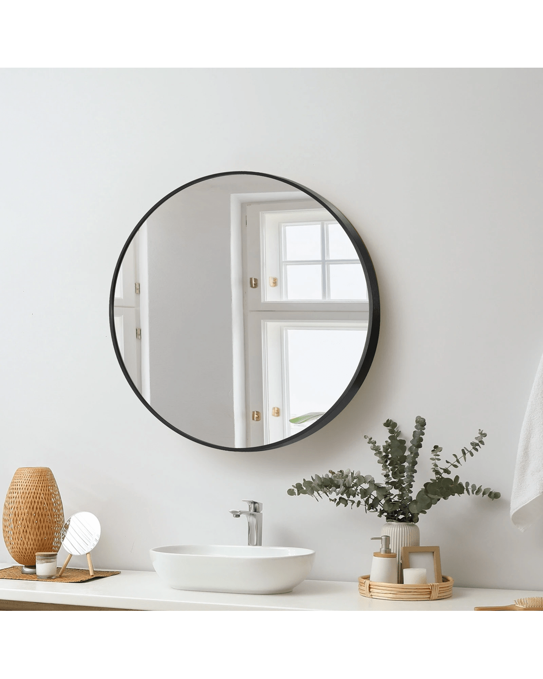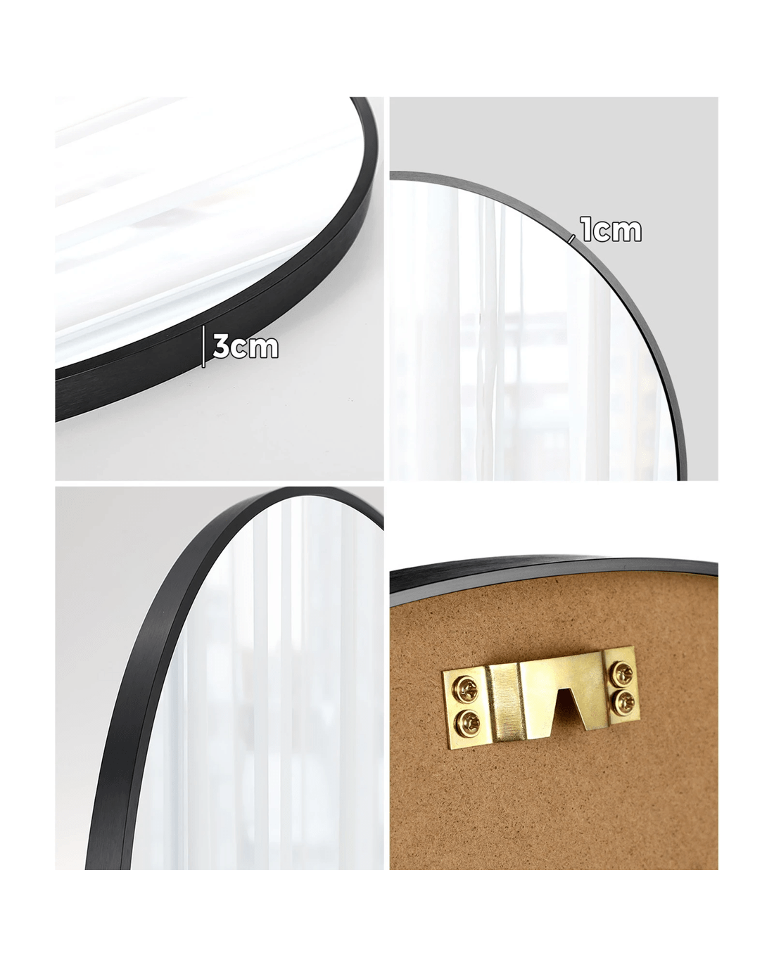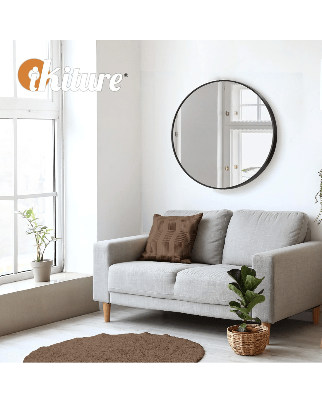 Oikiture Wall Mirrors Round Makeup Mirror Vanity Home Decor 50cm Bedroom - Black