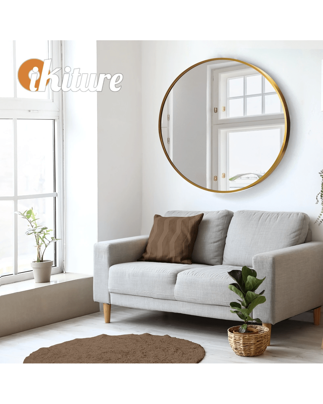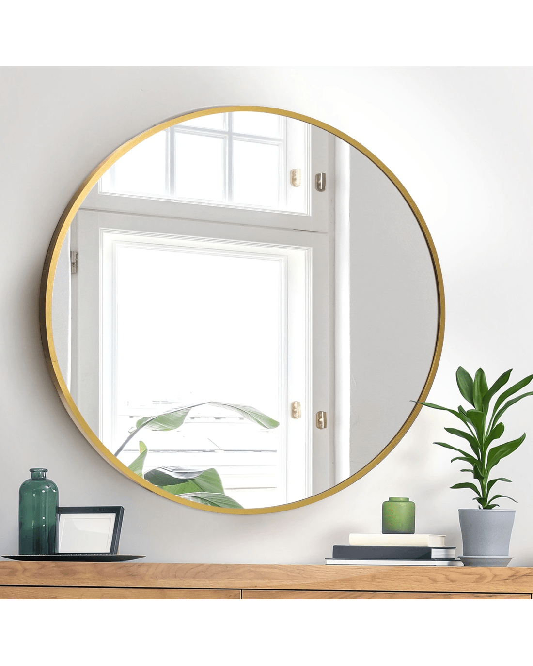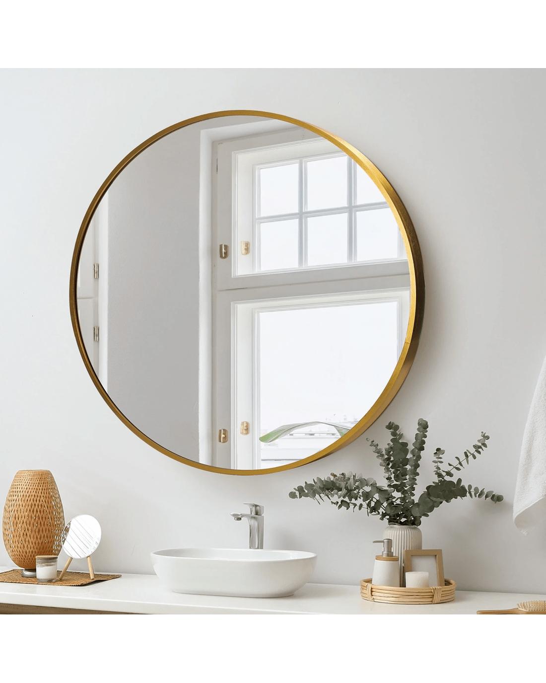Oikiture Wall Mirrors Round Makeup Mirror Vanity Home Decorative 80cm - Gold