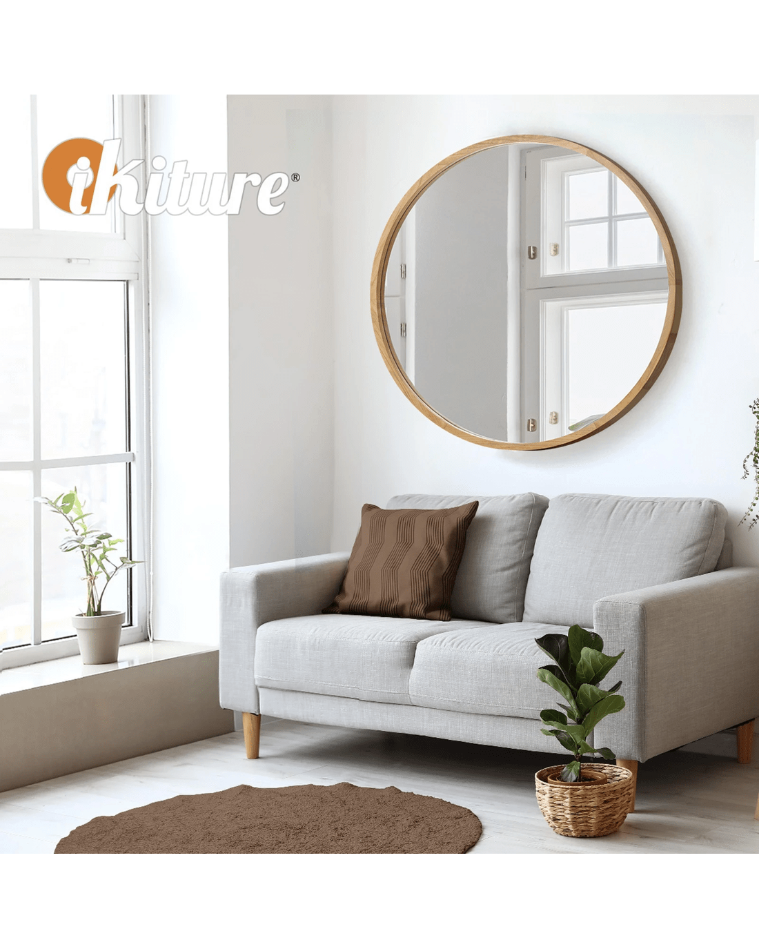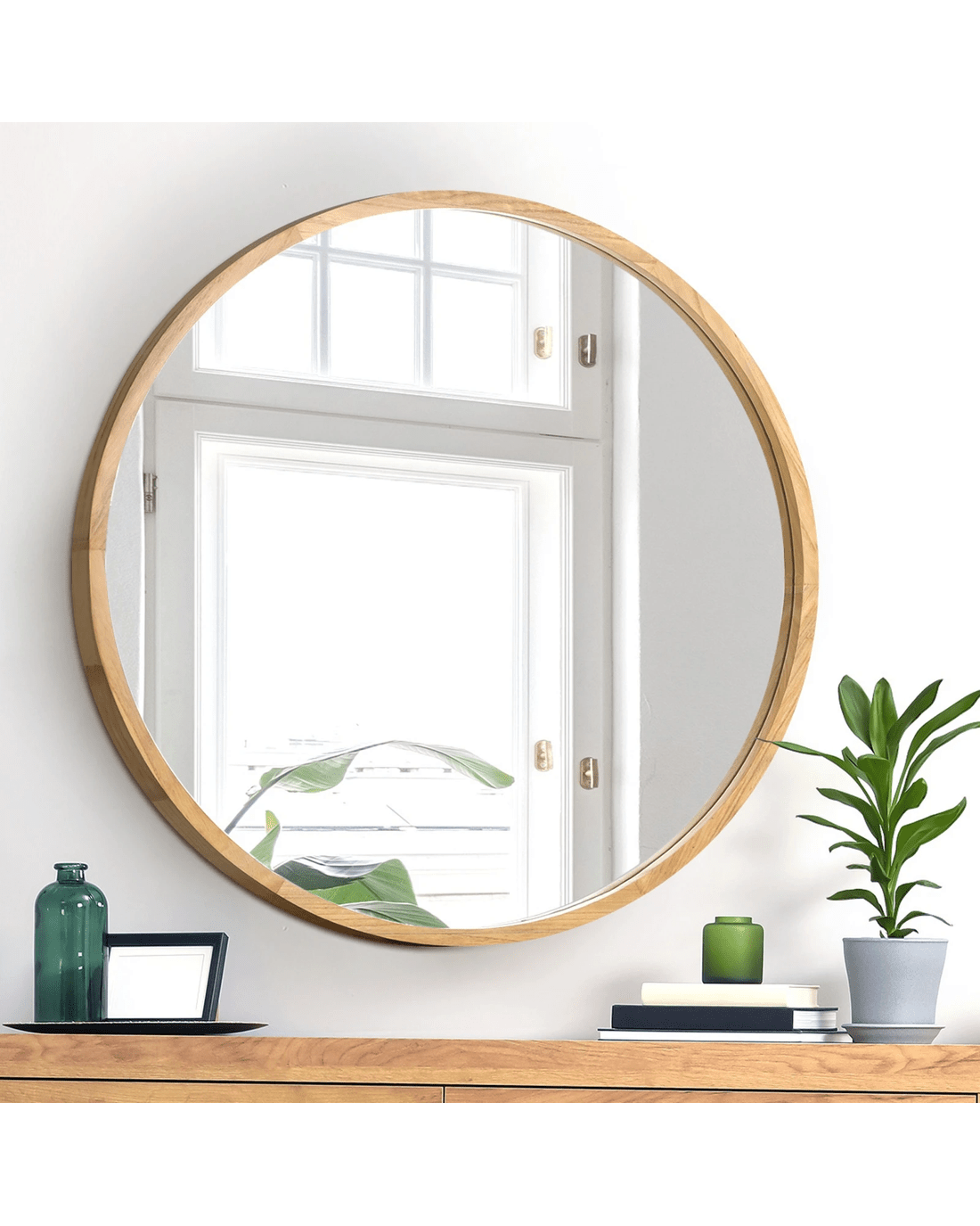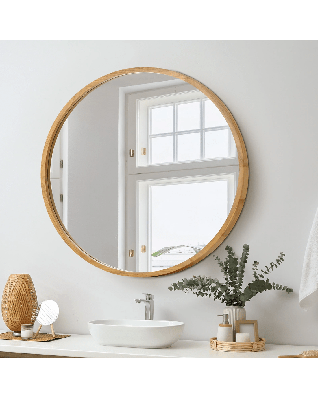 Oikiture Wall Mirrors Round Makeup Mirror Vanity Home Decorative 80cm - Natural