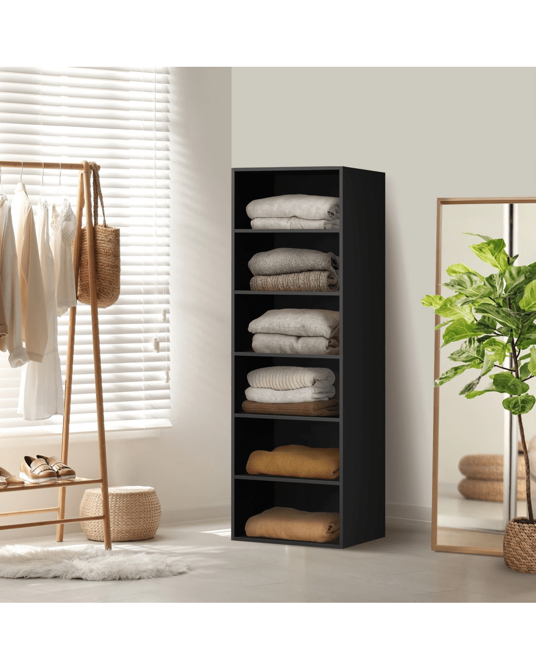 Sold by Kamprad's Oikos 1943Oikiture Wardrobe Shelf Unit Clothes Storage Cabinet 6 Shelves Organiser - Black