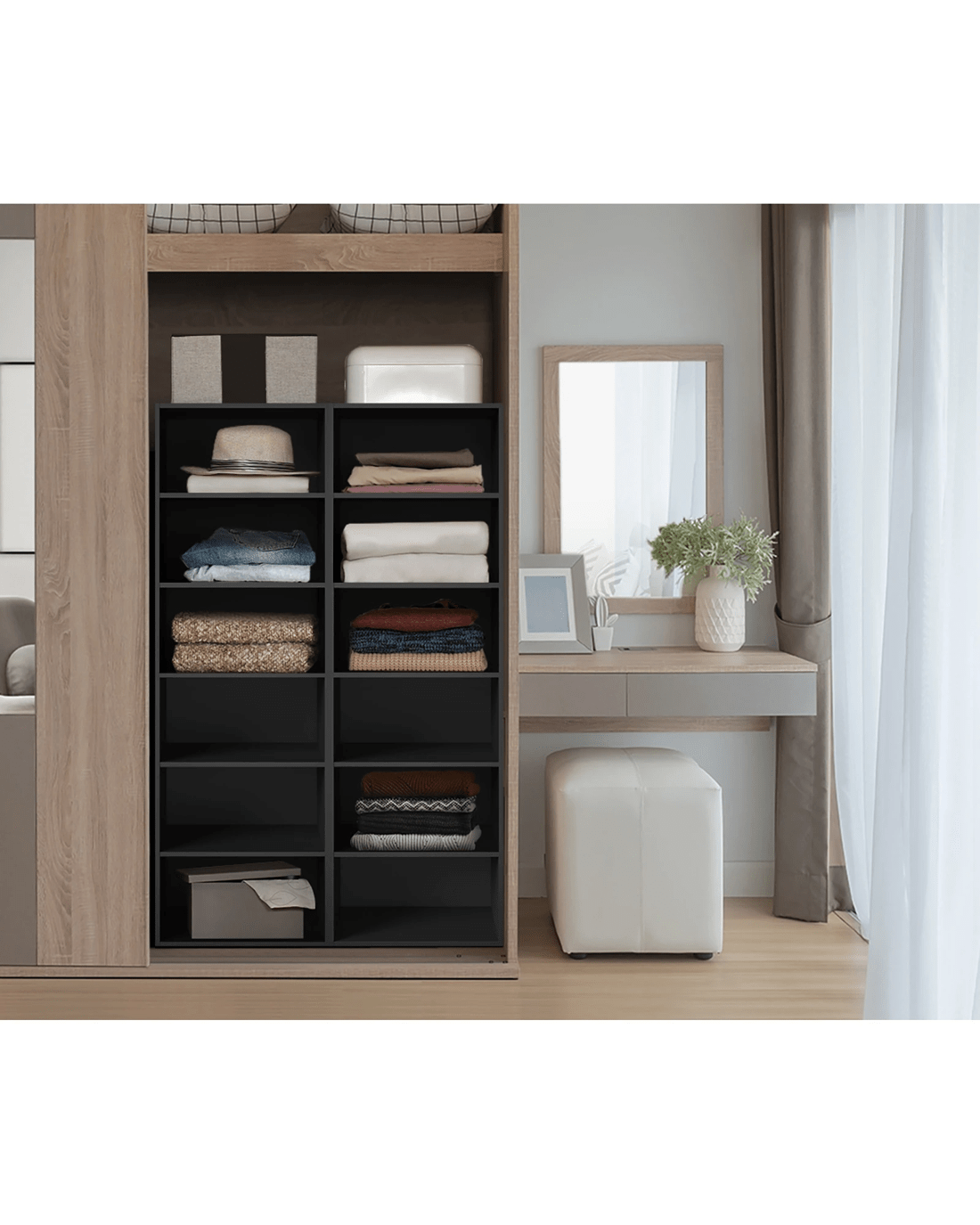 Introducing Oikiture built-in wardrobe unit, the perfect solution for your storage needs!