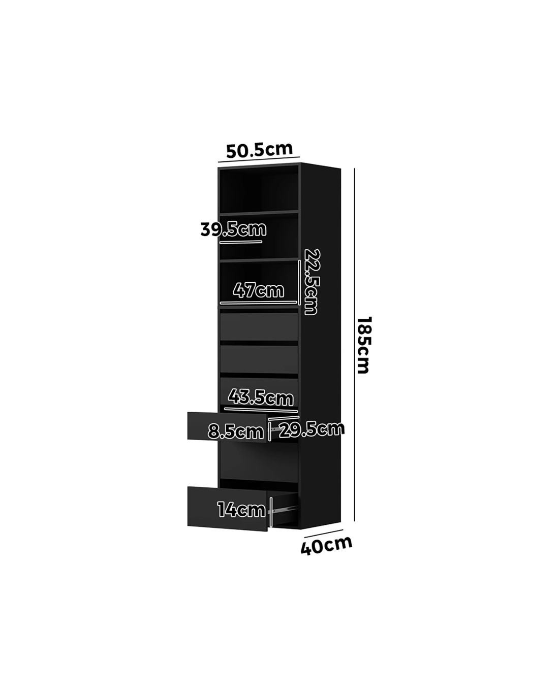 - 50.5cm x 40cm x 185cm