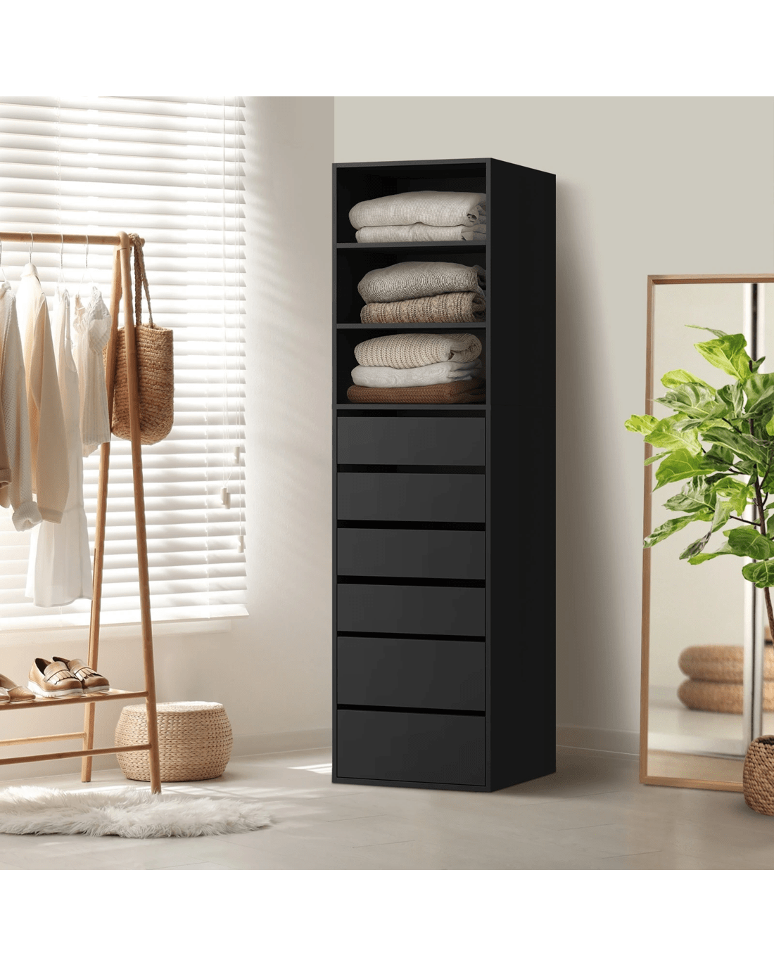 Sold by Kamprad's Oikos 1943Oikiture Wardrobe Storage Cabinet Shelf Unit Clothes 3 Shelves 6 Drawers - Black