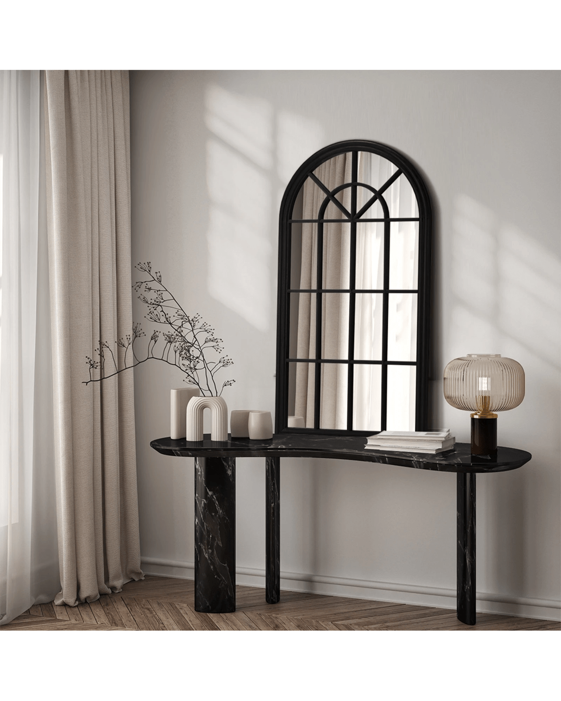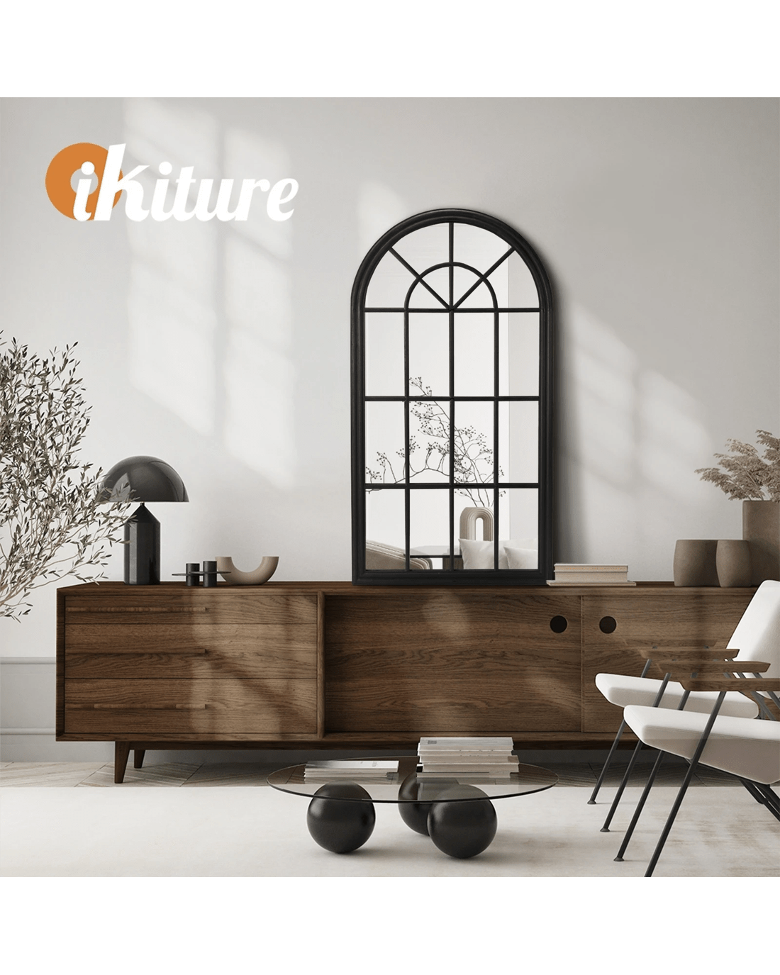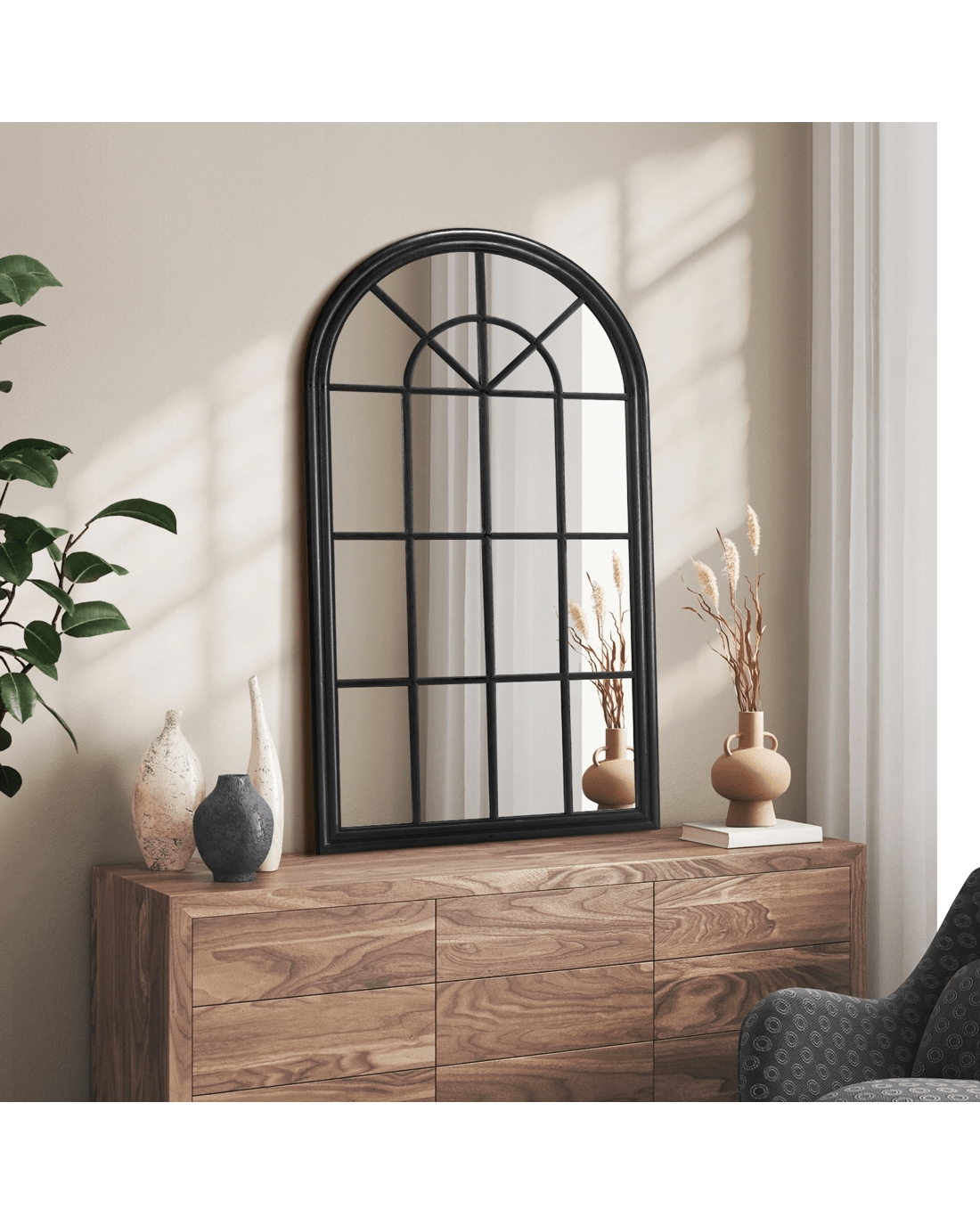 Sold by Kamprad's Oikos 1943Oikiture Window Mirror Arched Wall Mirrors Decor 76x51cm Wooden - Black