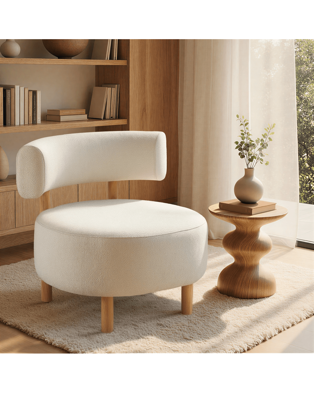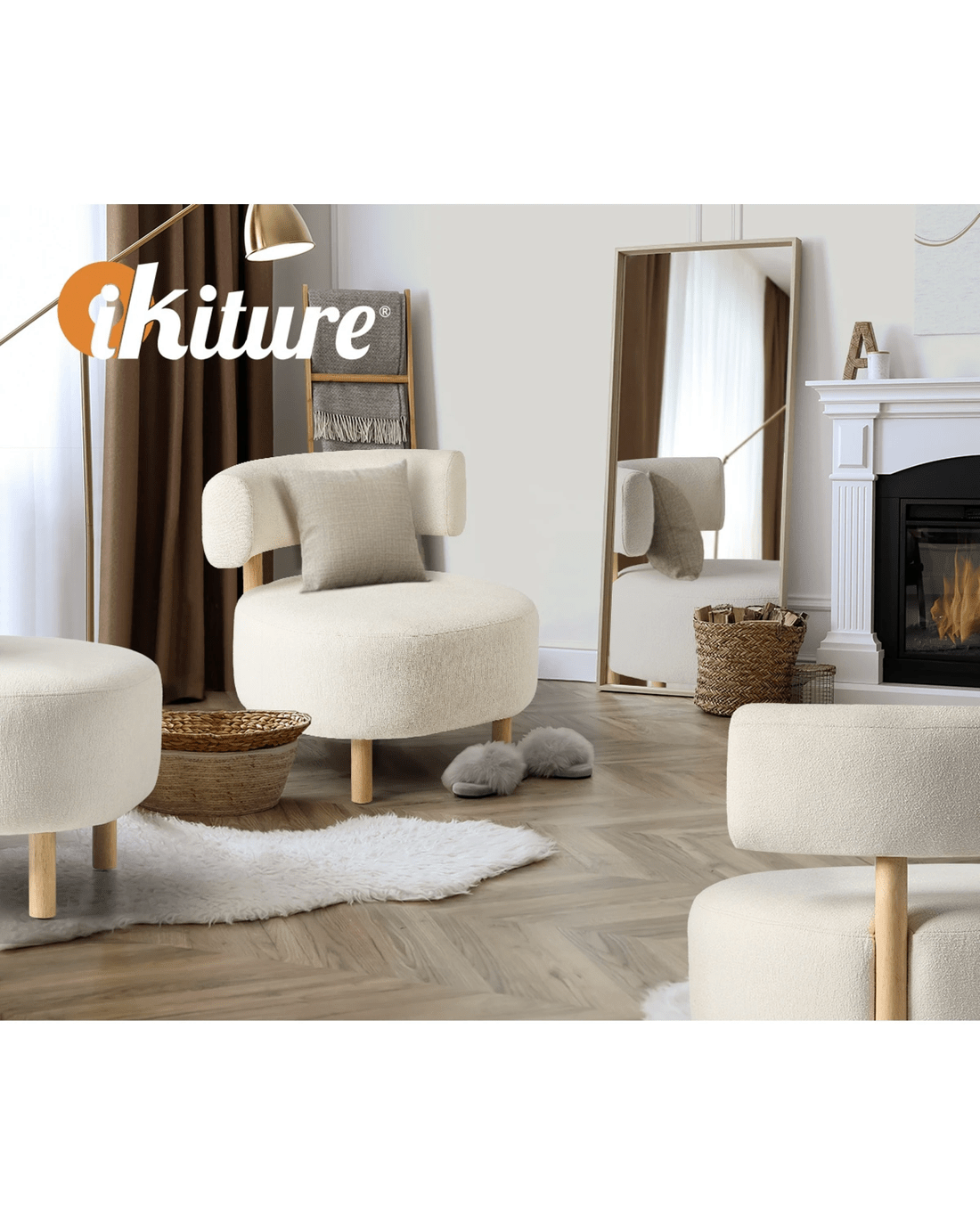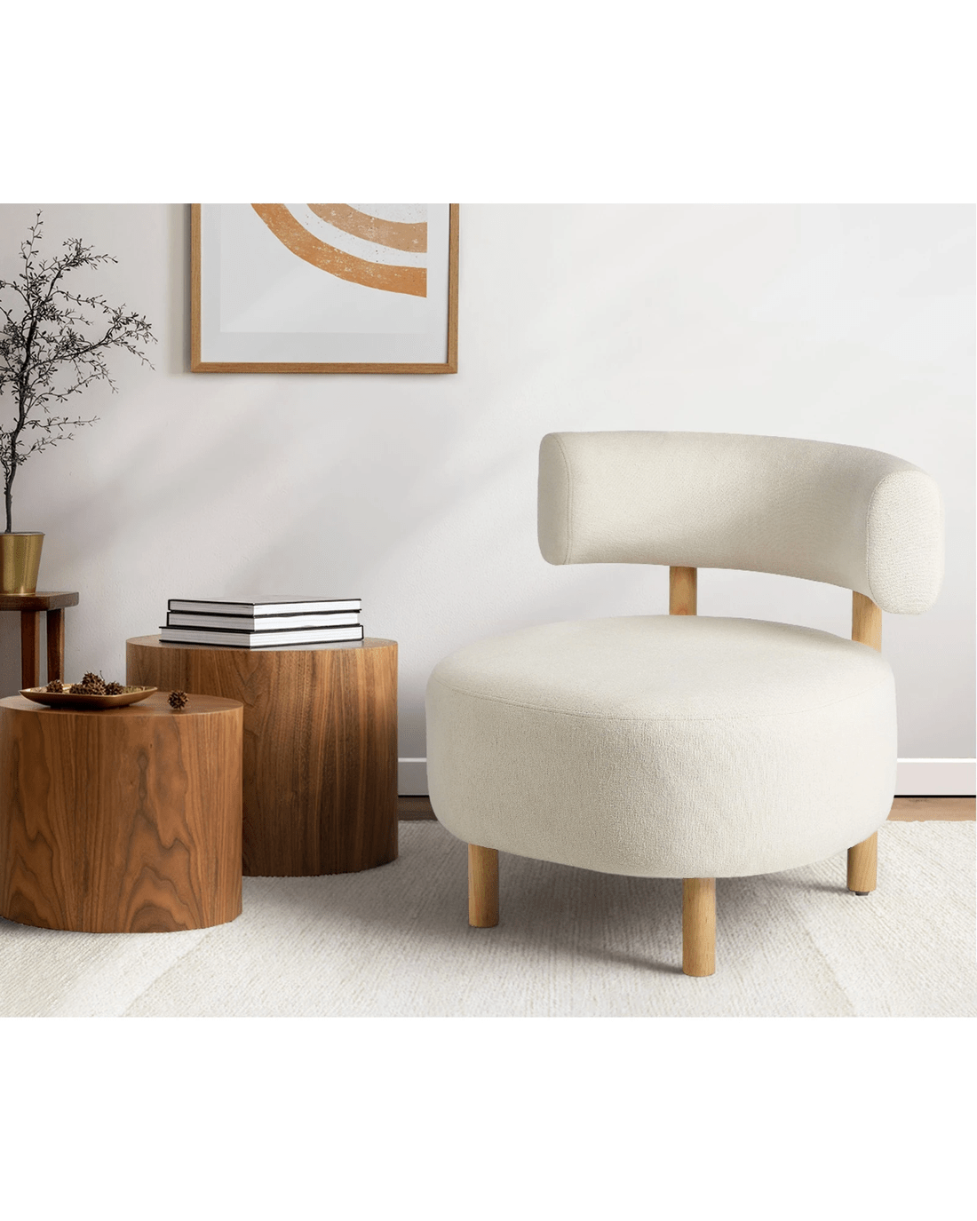 Oikiture Wooden Armchair Lounge Chair Linen Fabric Accent Armchairs - Beige