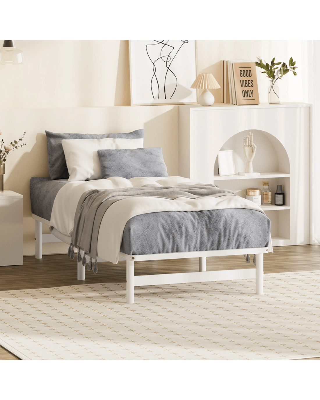 Oikiture Wooden Bed Frame Single Beds Base Solid Pine Timber Platform - White