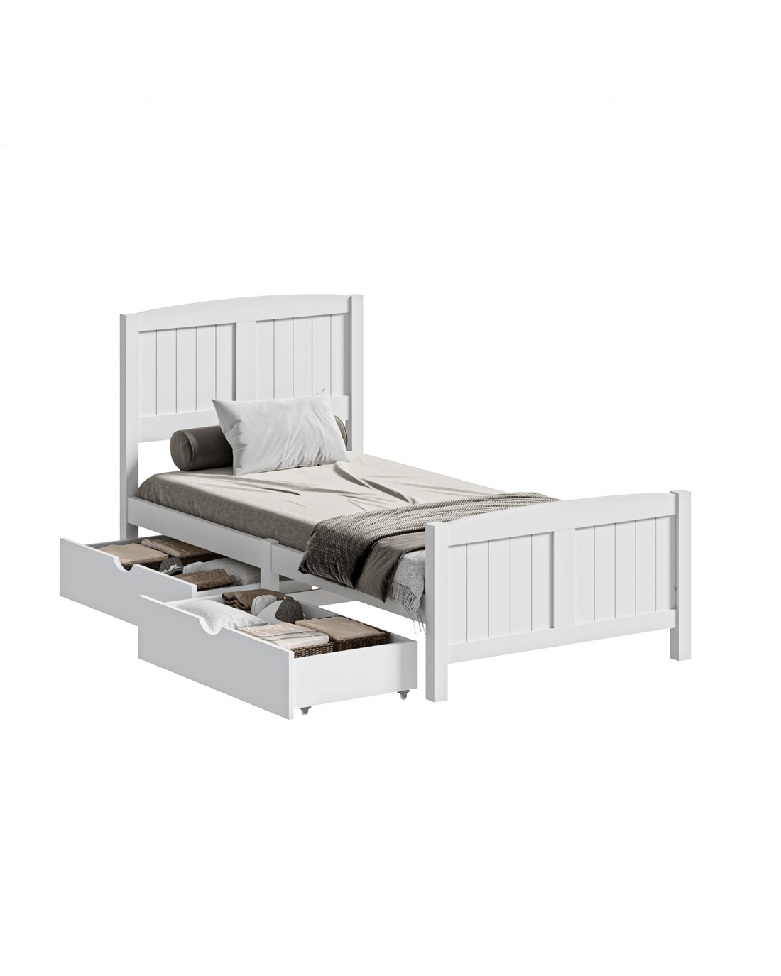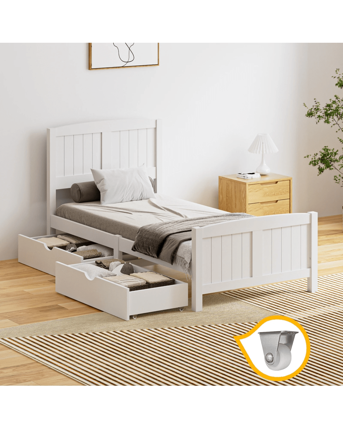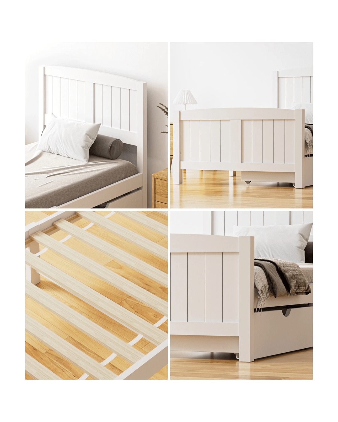 Sold by Kamprad's Oikos 1943Oikiture Wooden Bed Frame Single Size Base With Trundle Storage Drawers - White