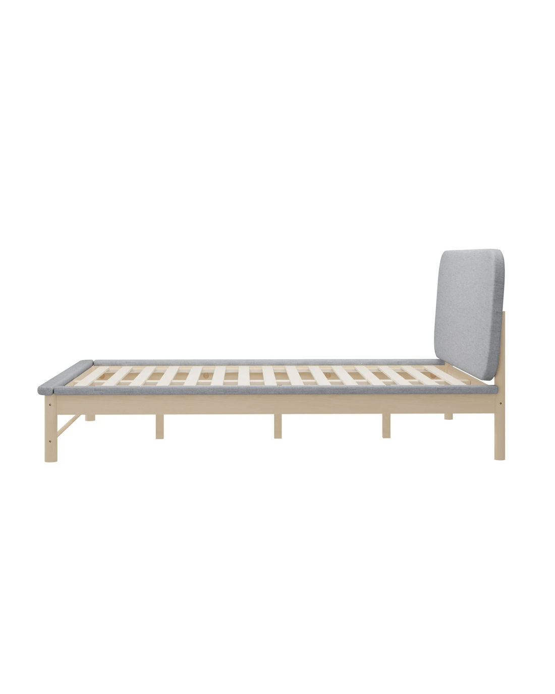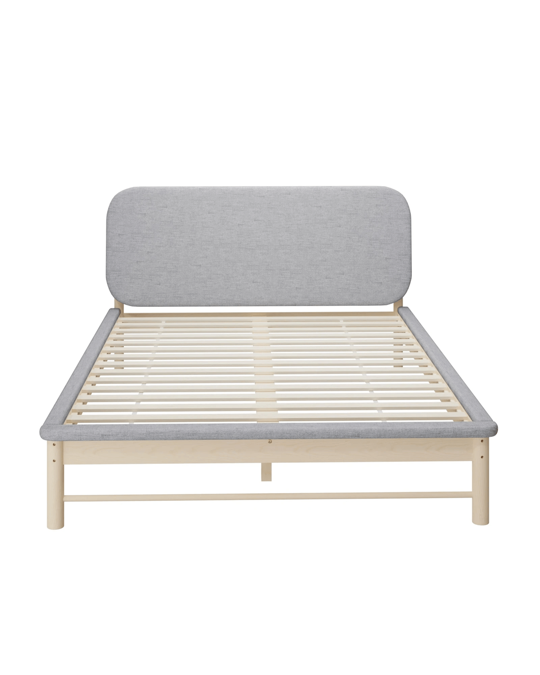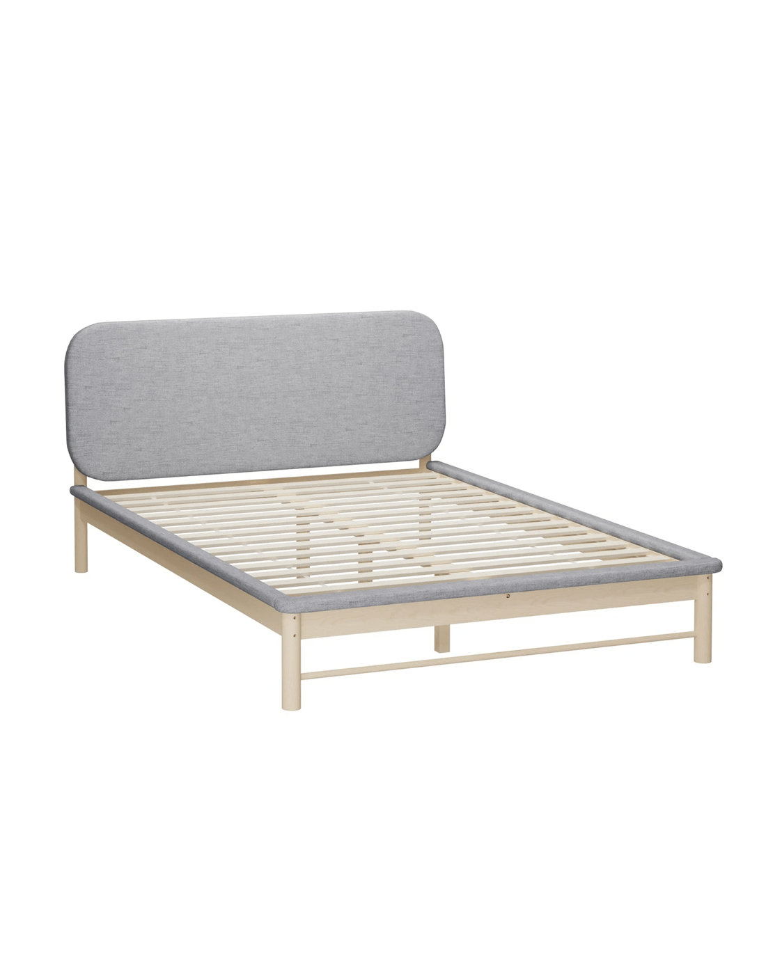 Sold by Kamprad's Oikos 1943Oikiture Wooden Bed Frame With Padded Fabric Edges Pine Headboard Base Double - Grey
