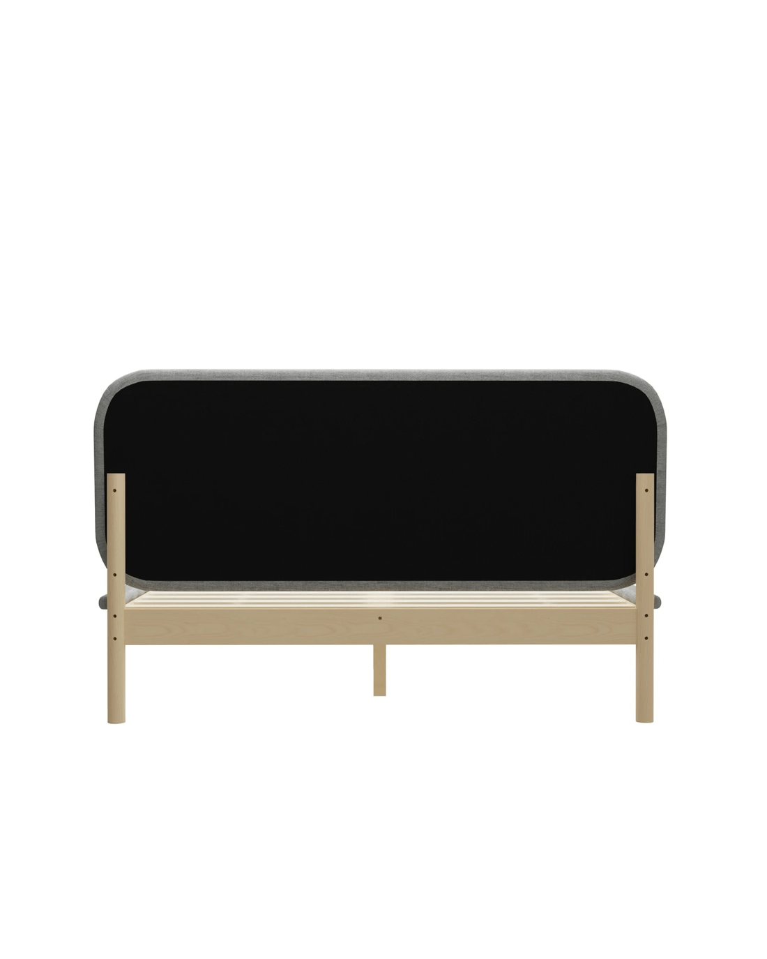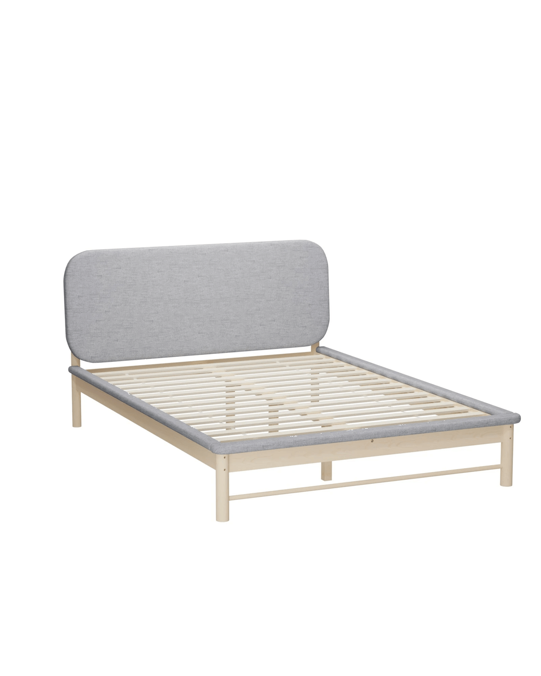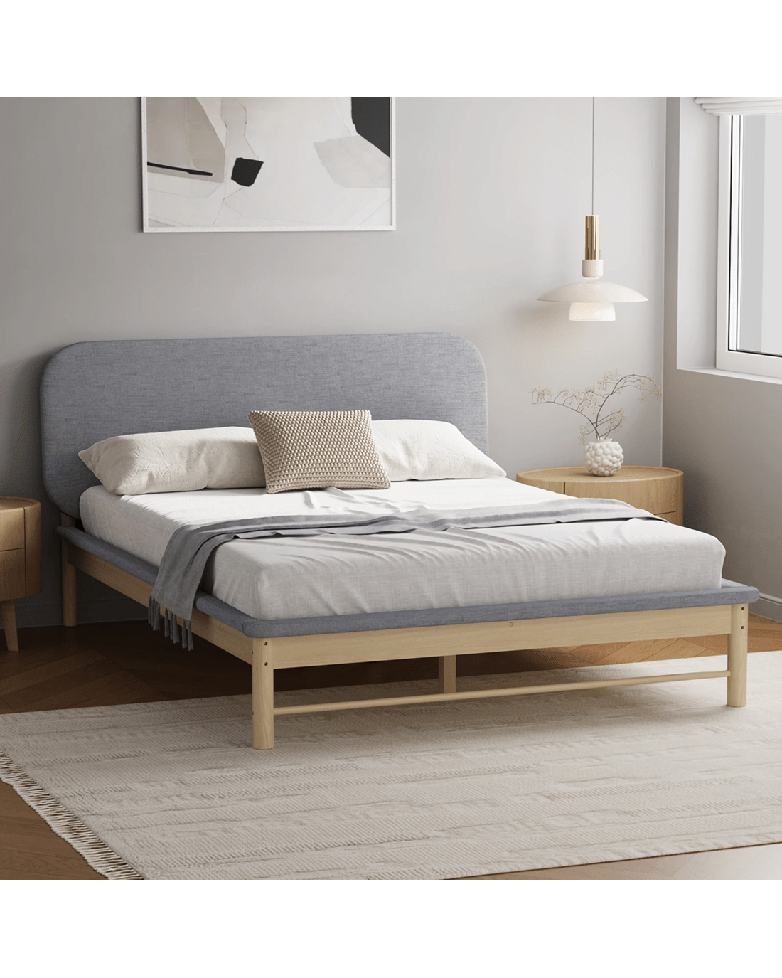 Sold by Kamprad's Oikos 1943Oikiture Wooden Bed Frame With Padded Fabric Edges Pine Headboard Base Queen - Grey