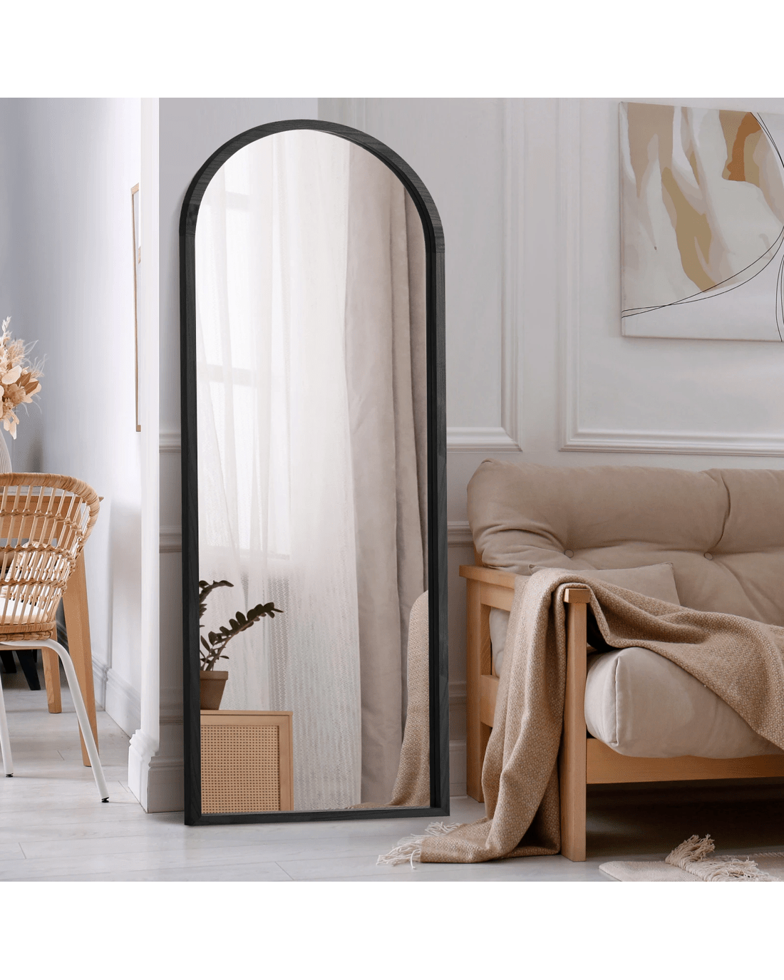 Oikiture Wooden Full Length Mirror 166x60cm Arched Dressing Floor Mirrors - Black