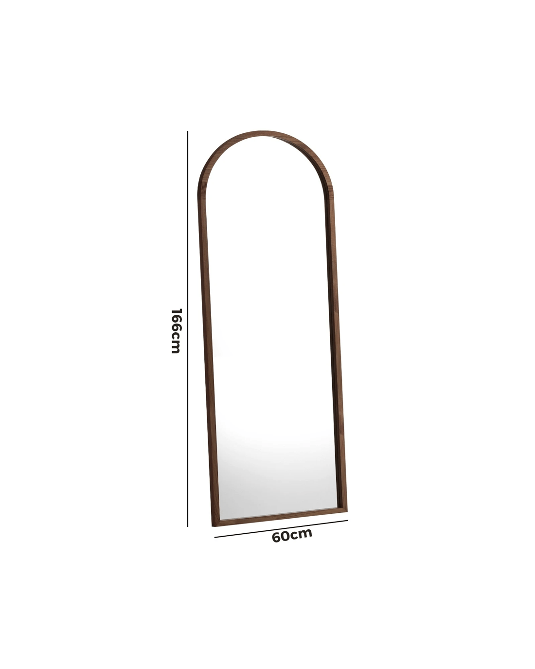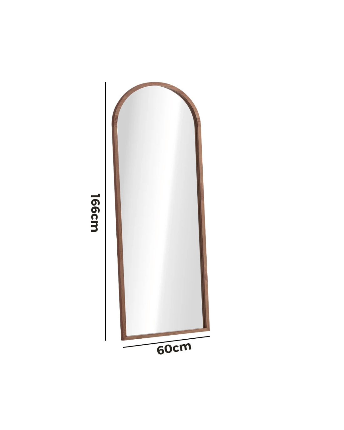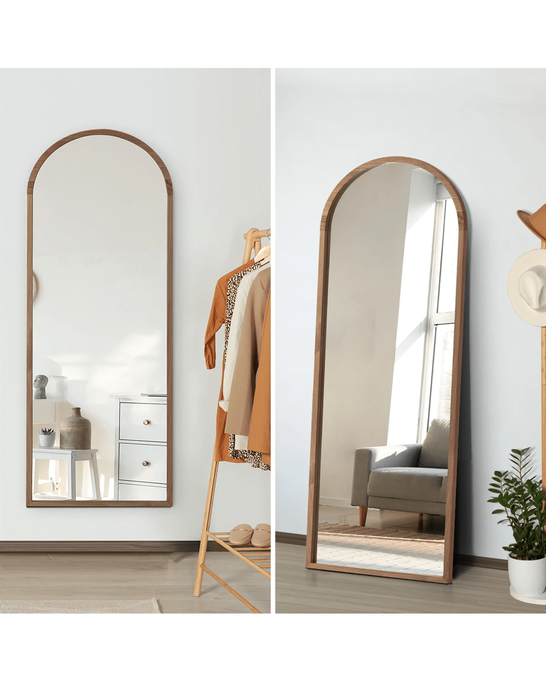 Oikiture Wooden Full Length Mirror 166x60cm Arched Dressing Floor Mirrors - Brown
