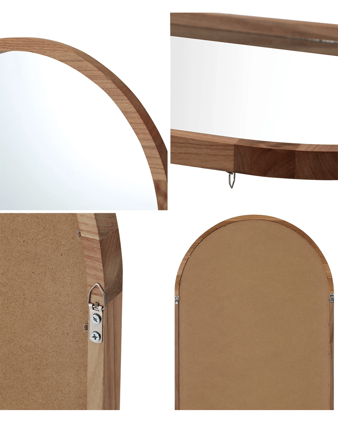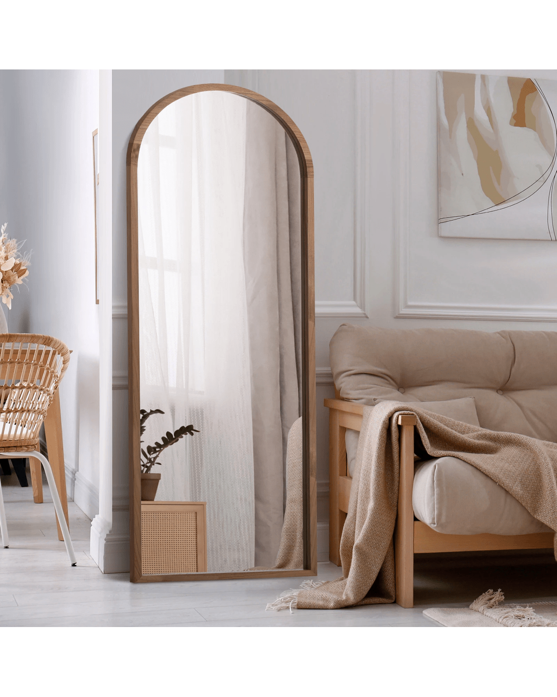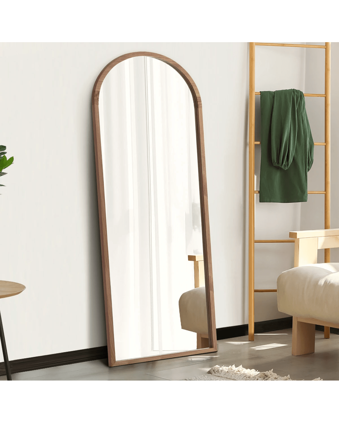 Oikiture Wooden Full Length Mirror 166x60cm Arched Dressing Floor Mirrors - Brown