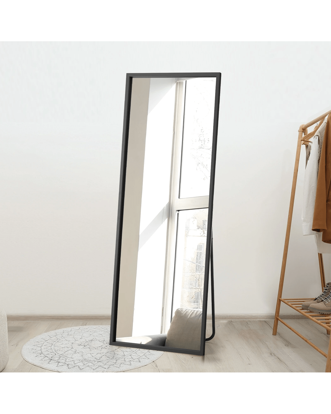 Set it on the floor with the built-in support, or lean it on the wall, our versatile full-length mirror will certainly captivate you with its exceptional presence. The Oikiture Full-Length Mirror is never short on inspiring stunning beauty in its fullest measure.