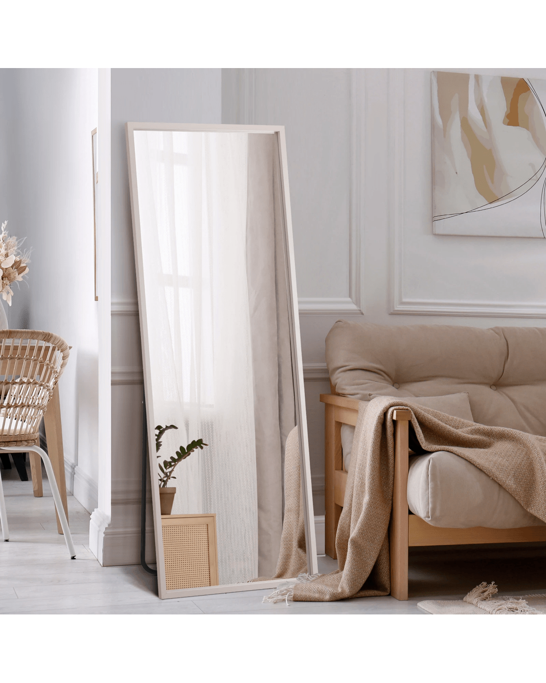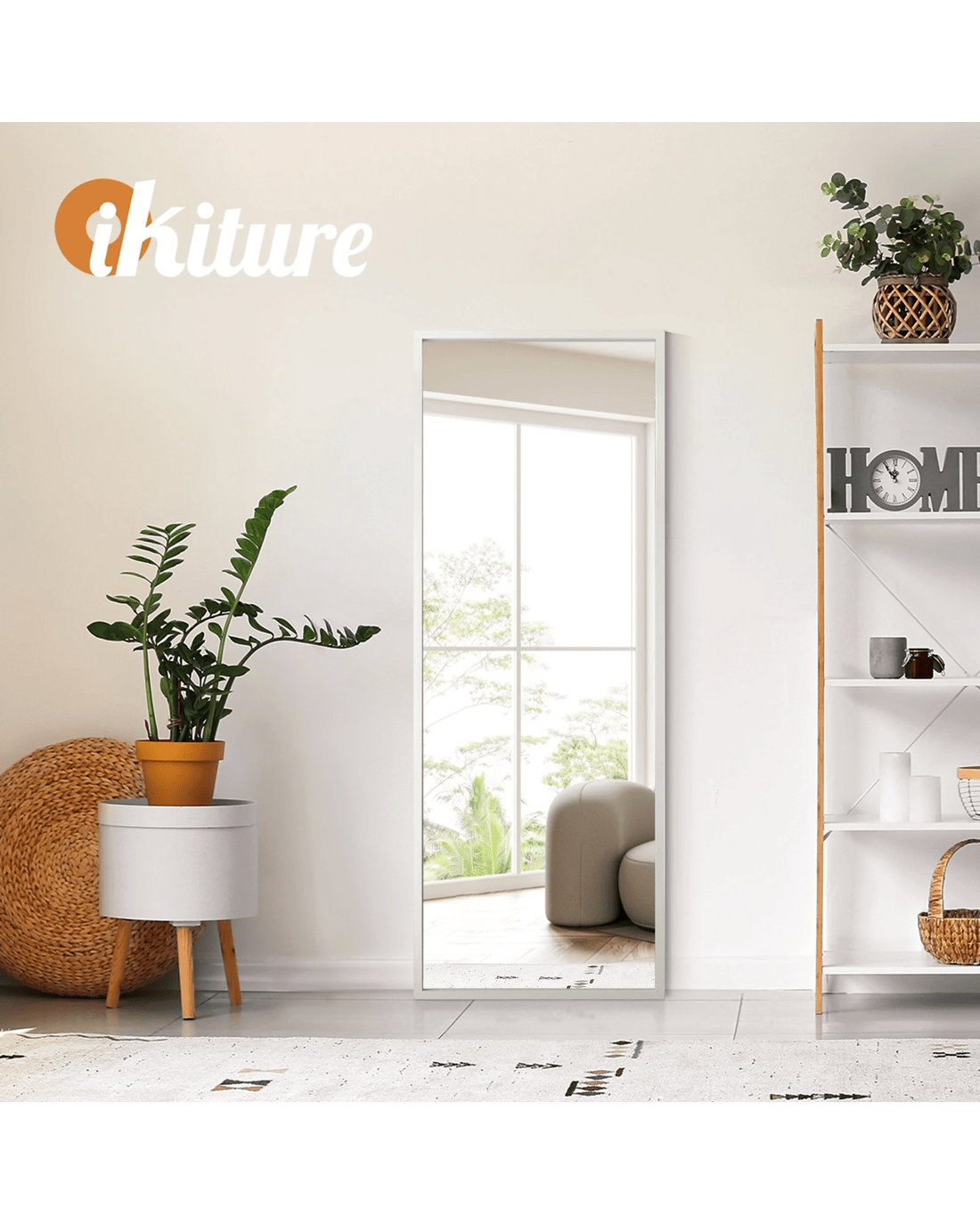 Oikiture Wooden Full Length Mirror 166x60cm Floor Mirrors Free Standing - White
