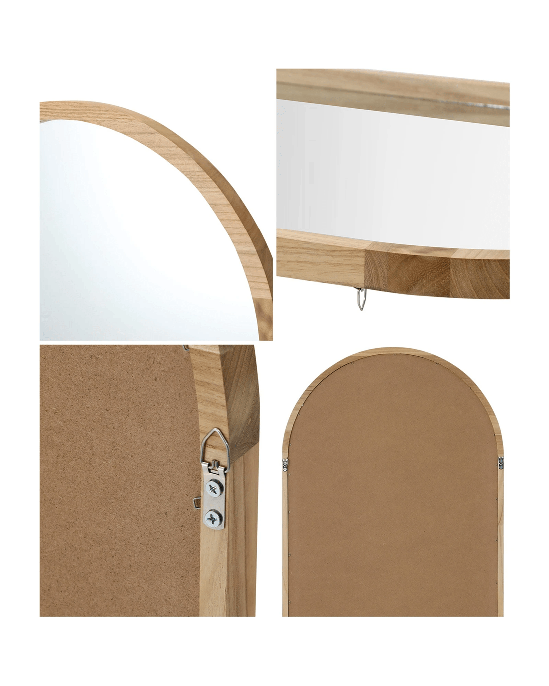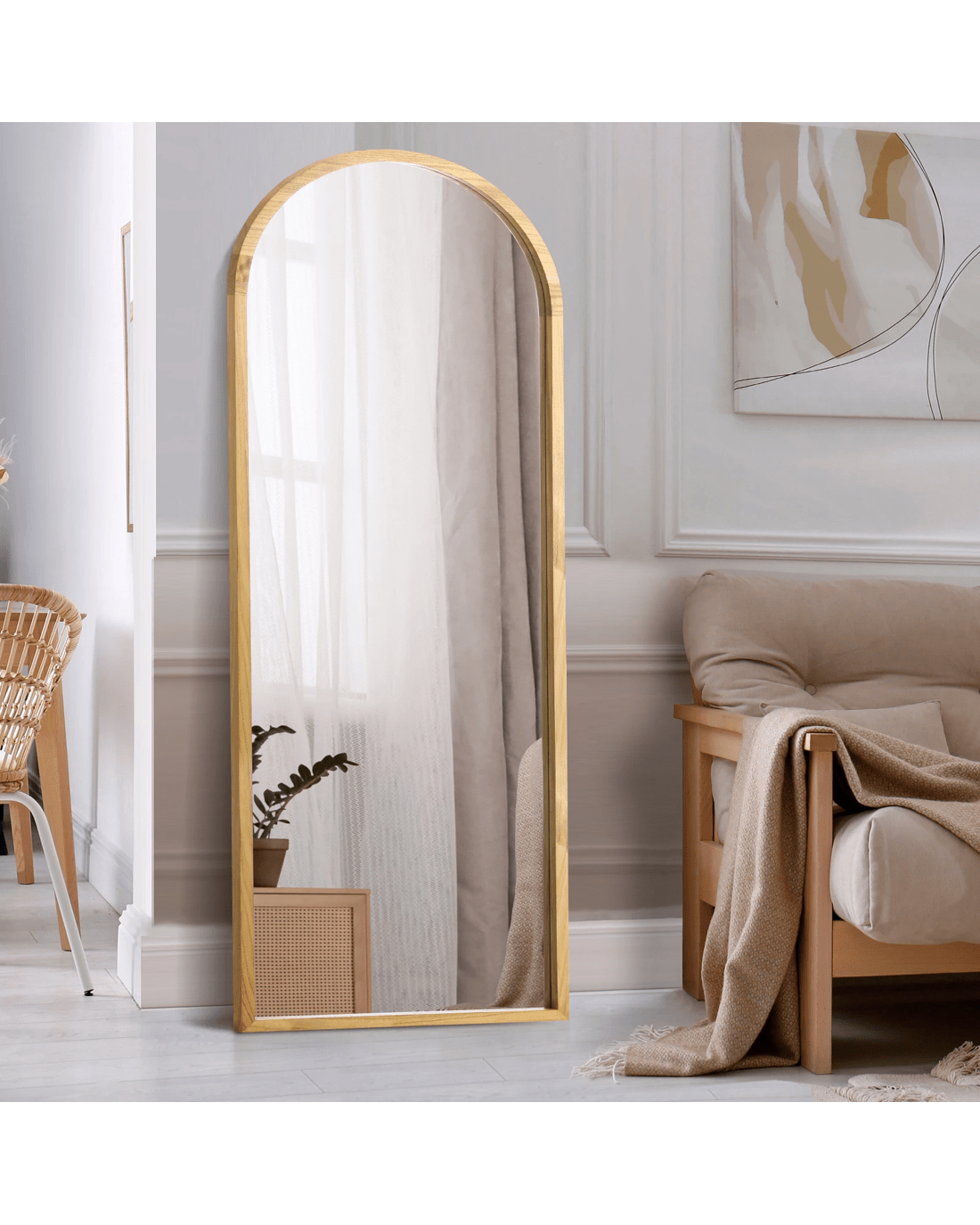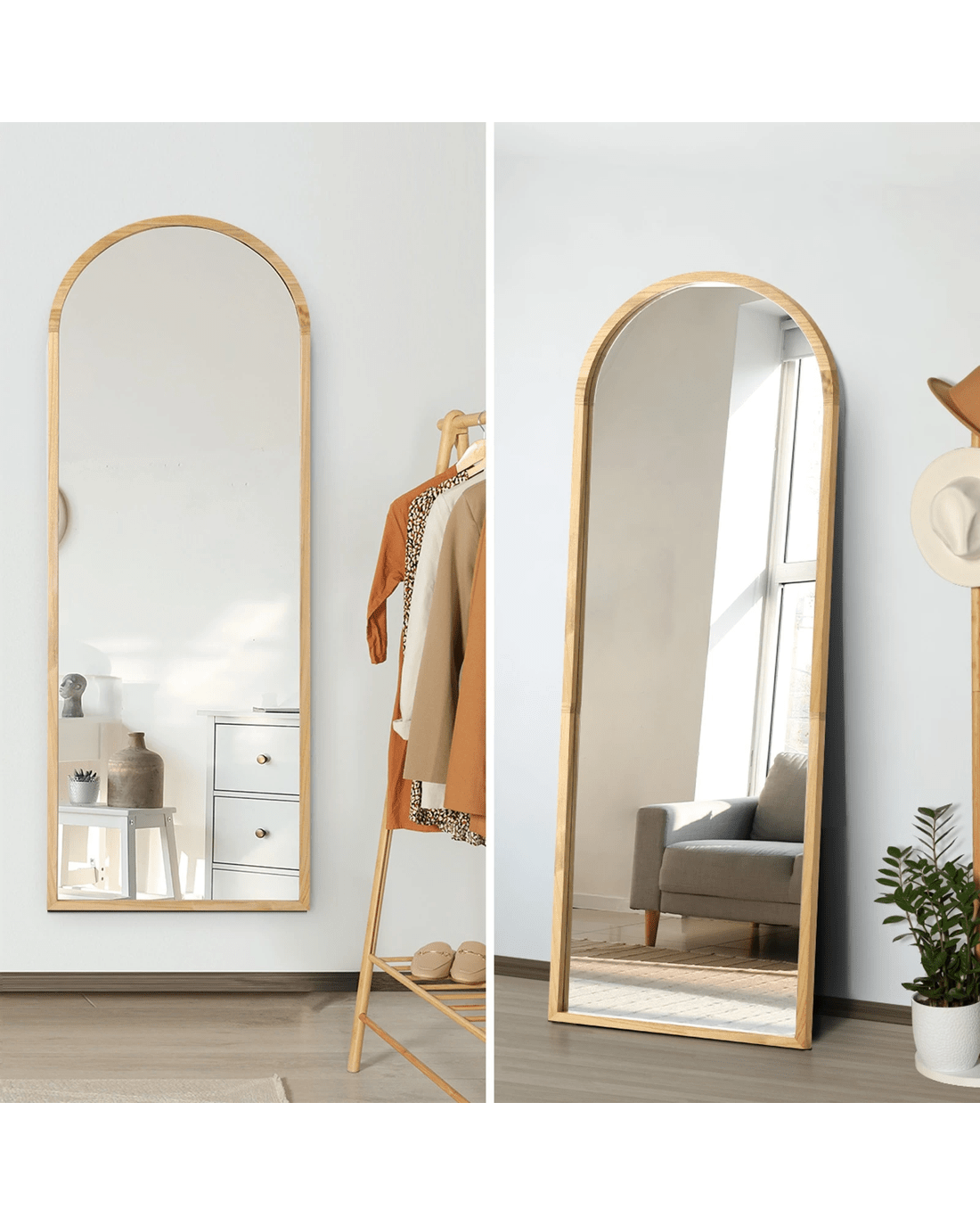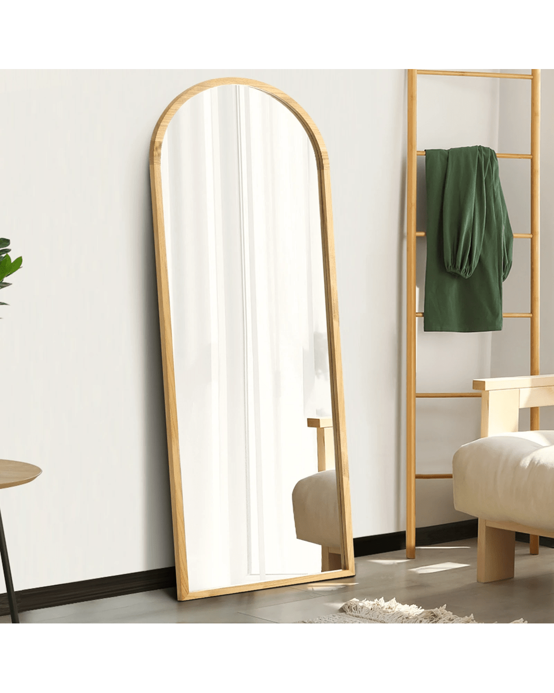 Oikiture Wooden Full Length Mirror 180x70cm Arched Dressing Floor Mirrors - Natural
