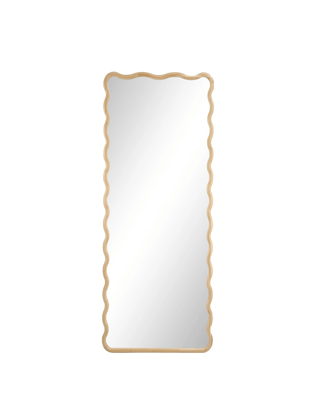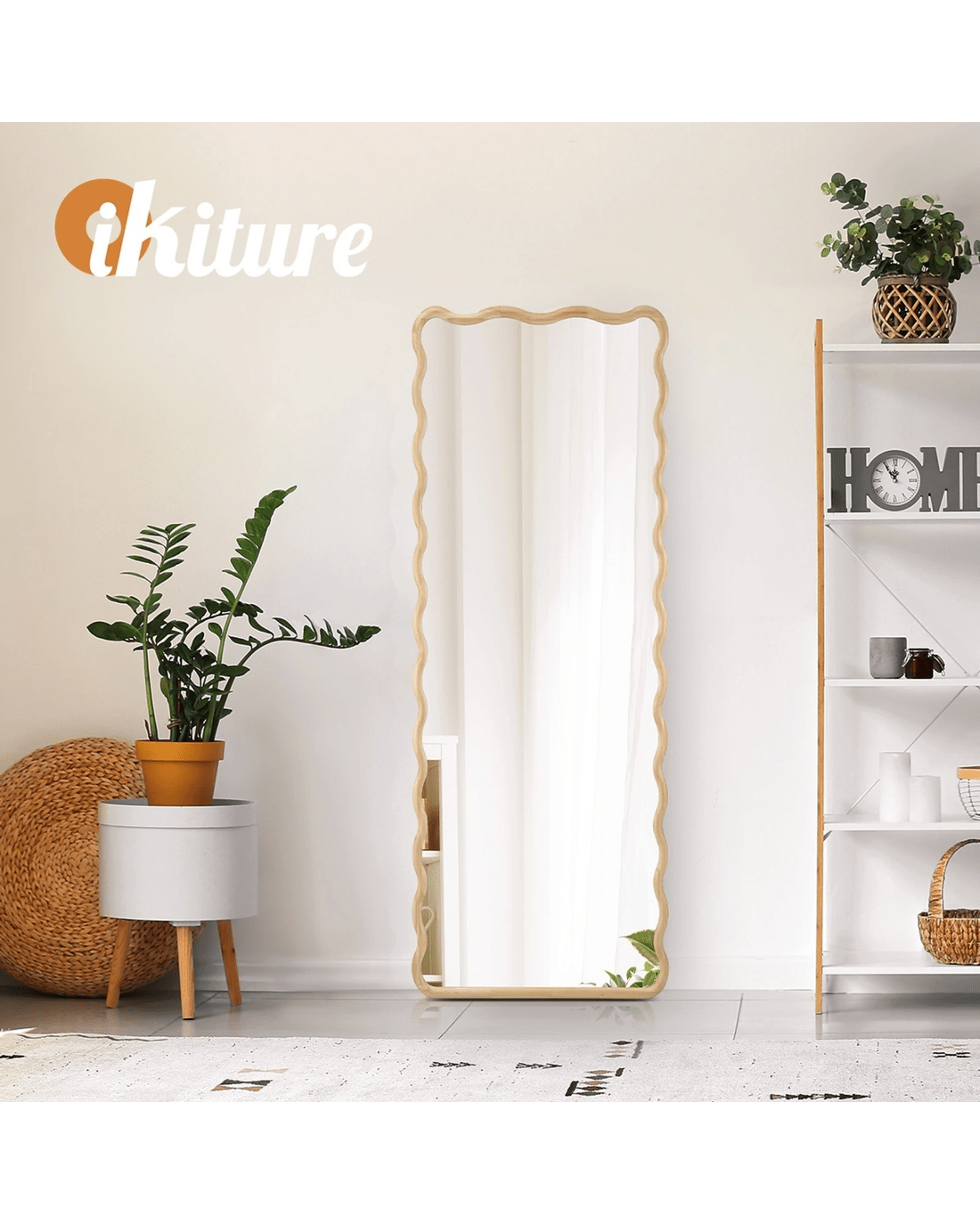 Oikiture Wooden Full Length Mirror 180x70cm Wavy Dressing Floor Mirrors - Natural