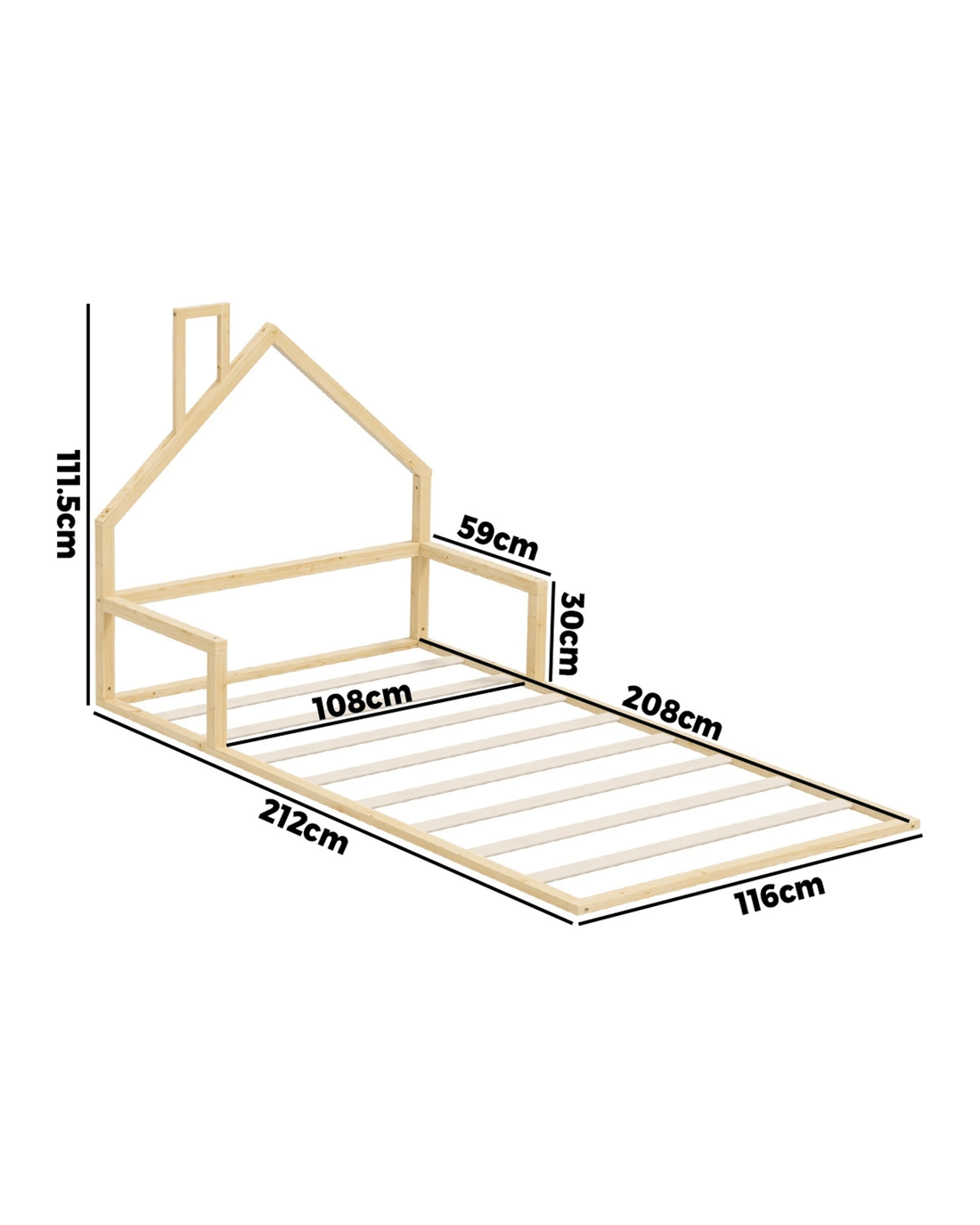 Oikiture Wooden Kids Bed Chimney Wooden King Single - Natural