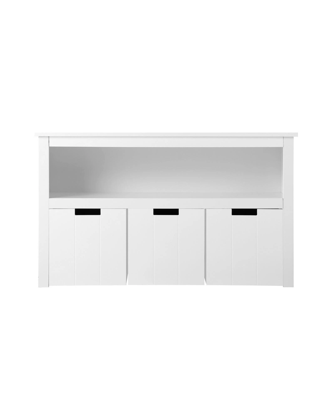 The toy storage cabinet features a sturdy and durable construction, ensuring it can withstand the rigors of everyday use. Its main open storage provides ample room for larger toys, stuffed animals, and board games, keeping them off the floor and within reach. The cabinet is thoughtfully designed with child-friendly dimensions, making it easy for your little one to independently retrieve and store their favorite playthings.