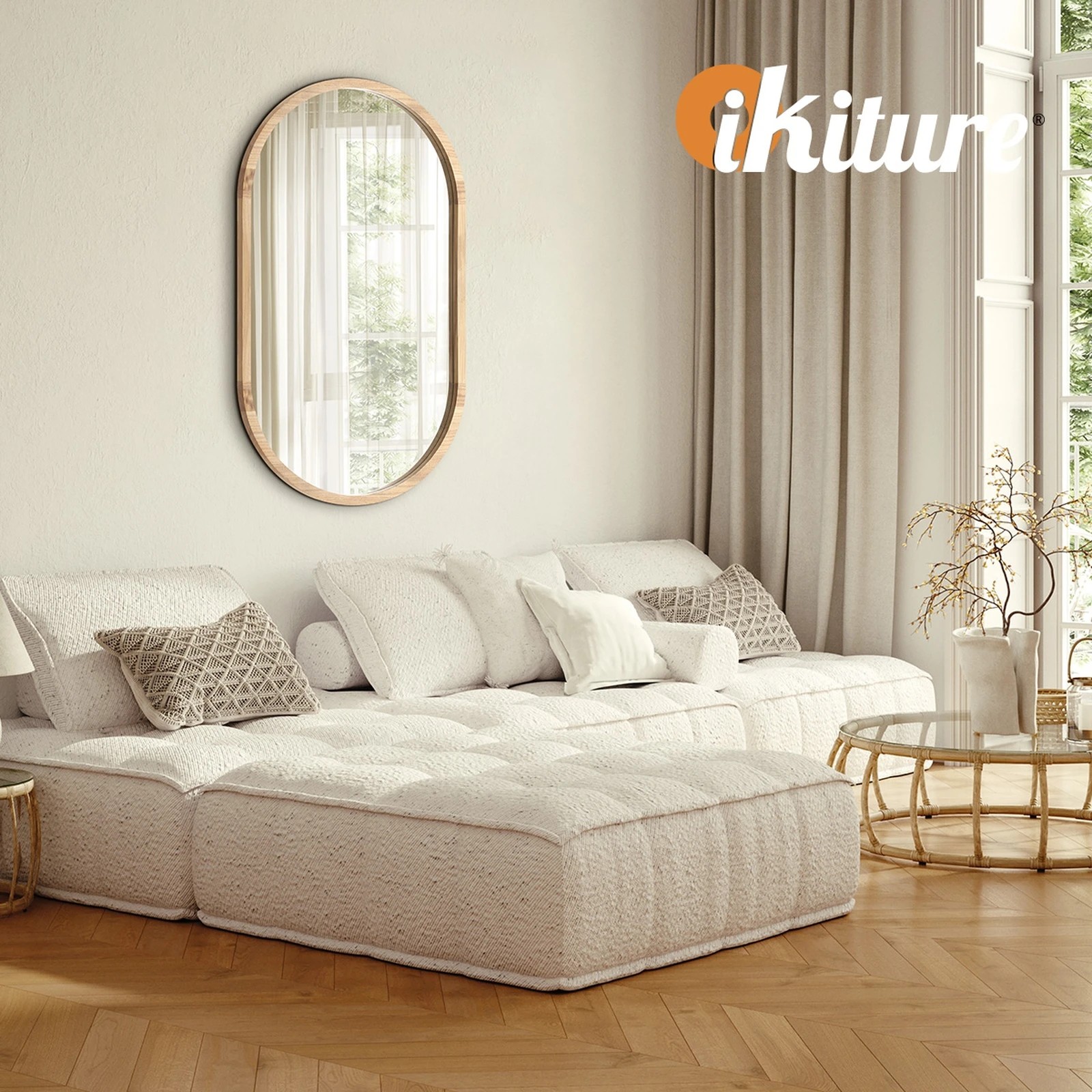 Oikiture Wooden Wall Mirrors Oval Makeup Mirror Home Decor 84x50cm - Natural