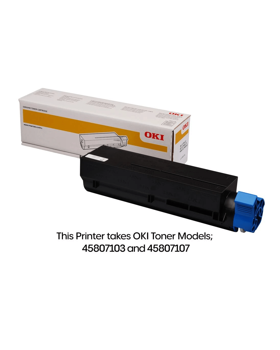 - The box includes: 1 x OKI B412DN Mono Laser Printer, Toner, Warranty Card, Power Cord, USB Cable and CD Drivers.