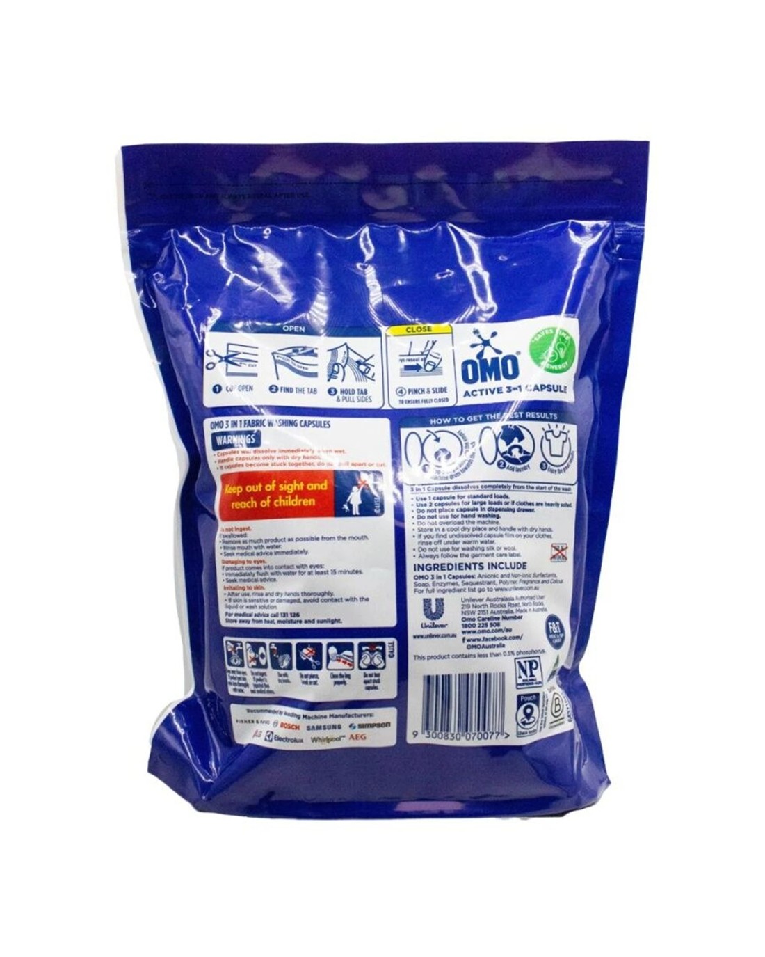 The OMO brand presents the 2PK Active 3-in-1 Laundry Capsule Detergent for Cold Washing, designed for effective and convenient laundry cleaning. These capsules are ideal for busy households seeking a simple solution that combines multiple laundry functions in one easy-to-use product.