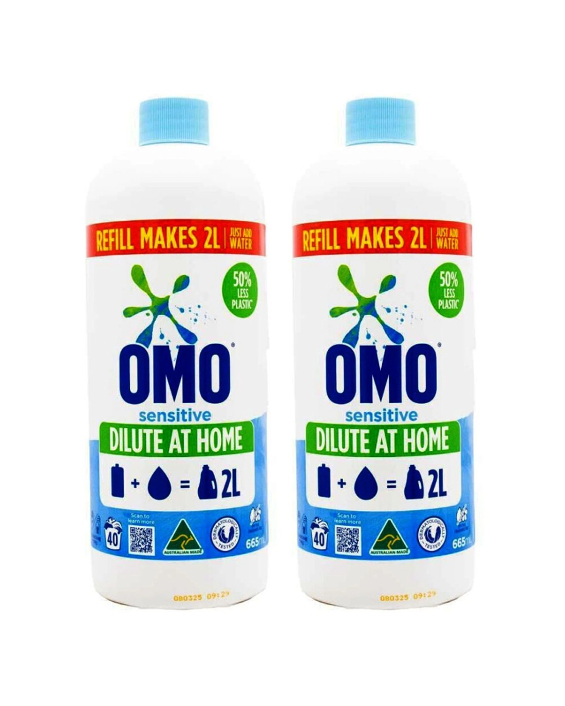 Omo 2PK Sensitive Laundry Refill Detergent 665ml Concentrated Eco Refill
