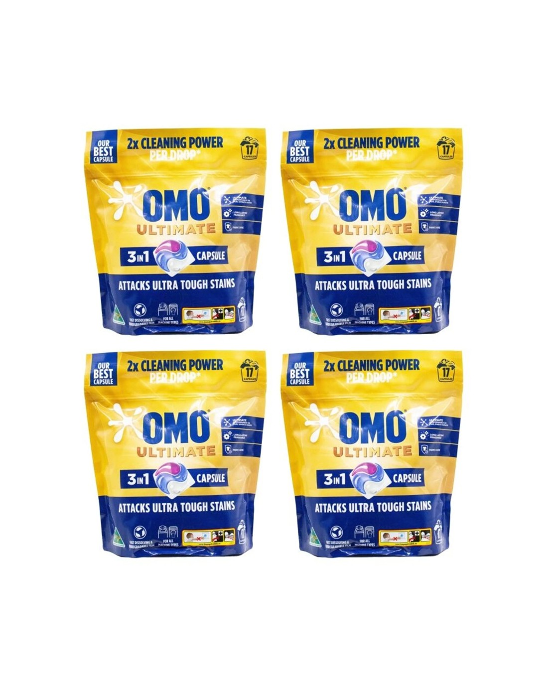 OMO 4x 17PK Ultimate 3-in-1 Laundry Capsule Detergent 2x Cleaning Power - Multi