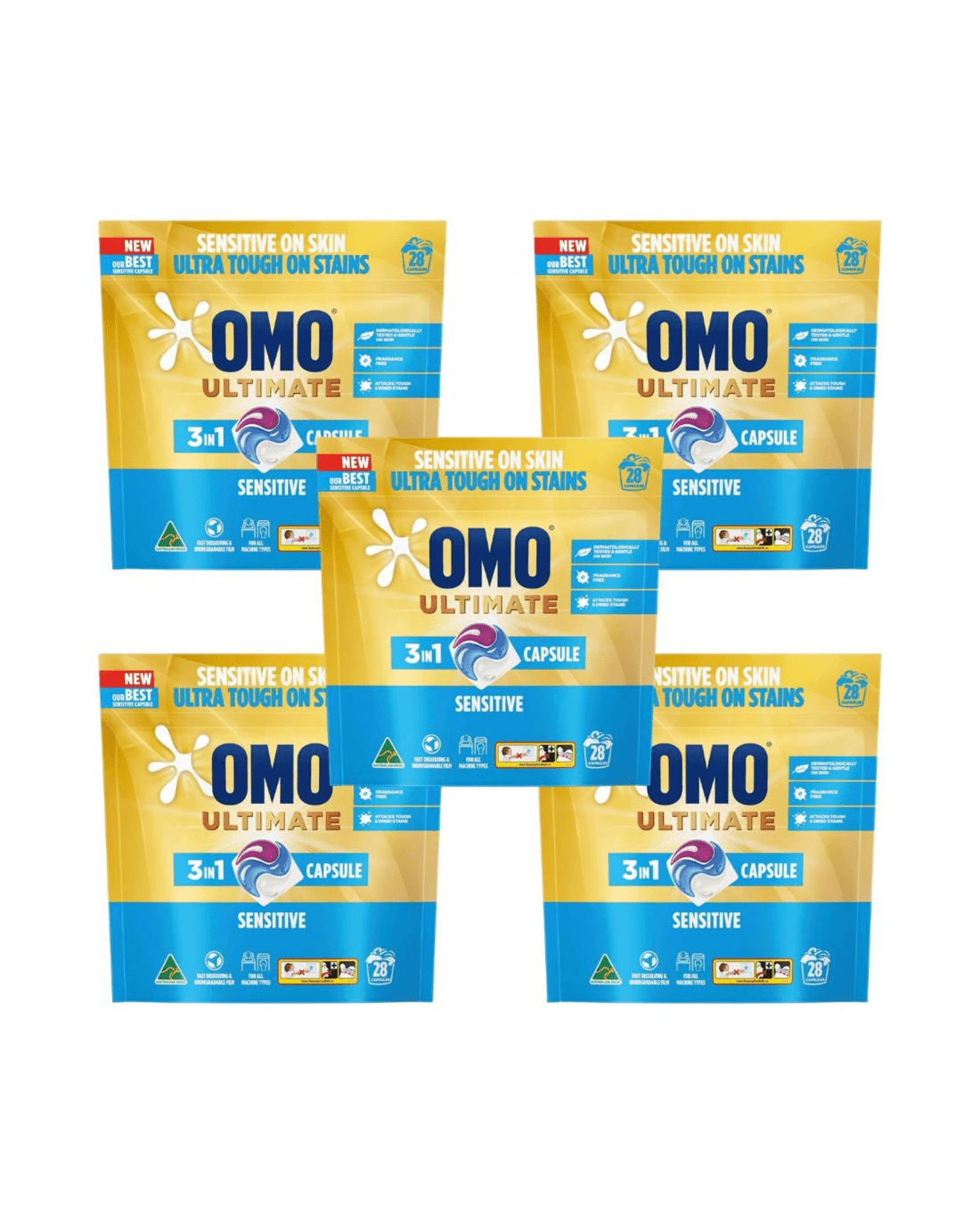 5 x 28pk Omo Ultimate 3 in 1 Sensitive Laundry Detergent Capsules (140 Capsules)
