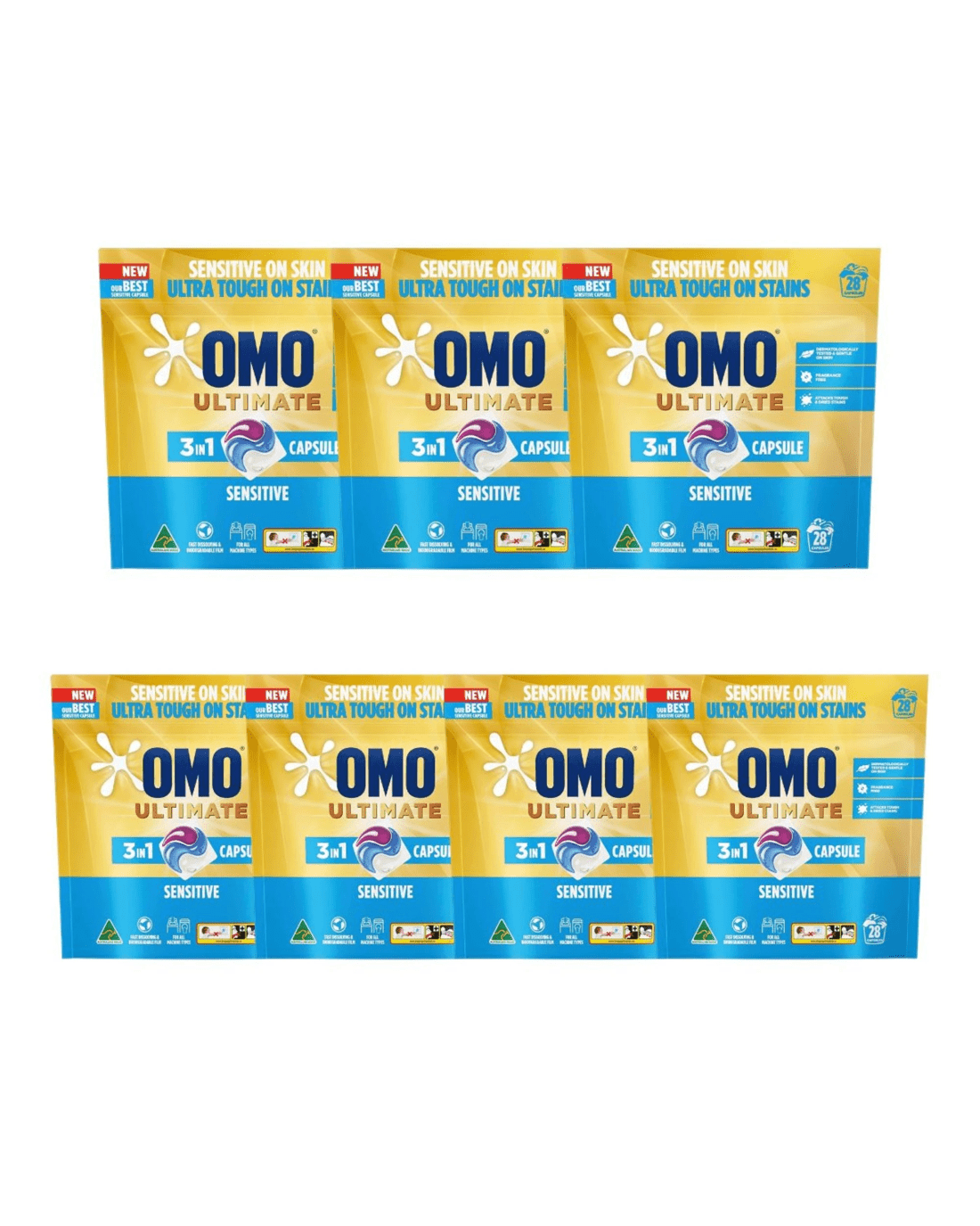 7 x 28pk Omo Ultimate 3 in 1 Sensitive Laundry Detergent Capsules (196 Capsules)