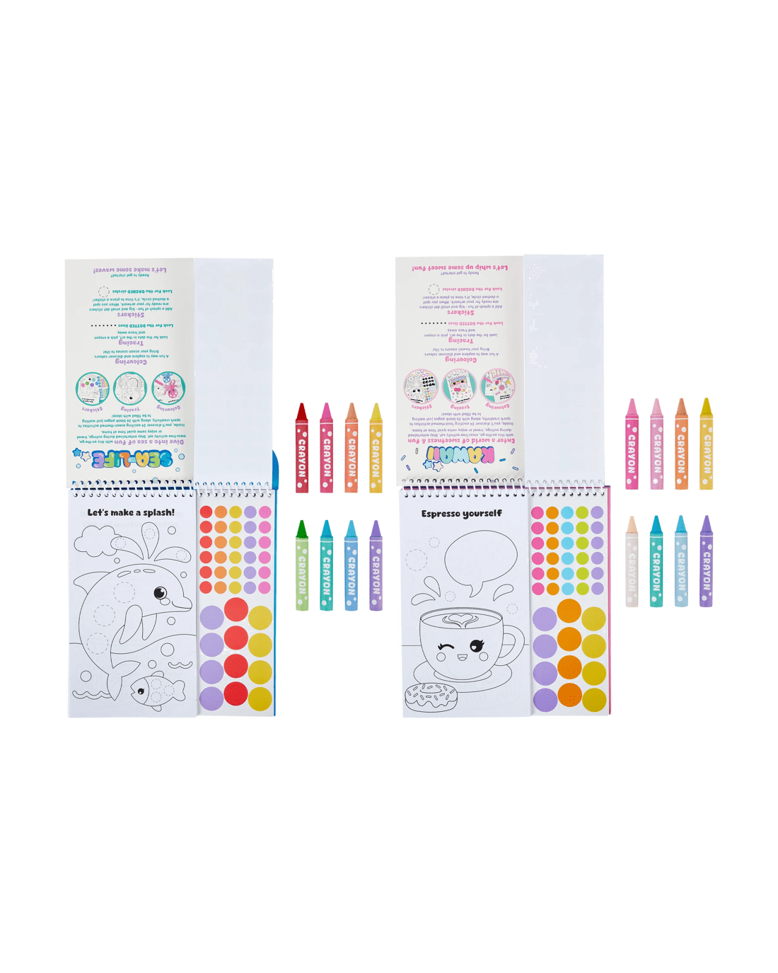 - Sea-life: Includes 24 x activity pages, 26 x blank pages, 296 x stickers and 8 x crayons