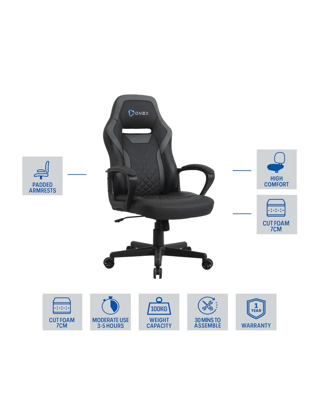 Sold by OfficeworksONEX GX1 Gaming Chair Black Ergonomic Chairs and Desk Chairs