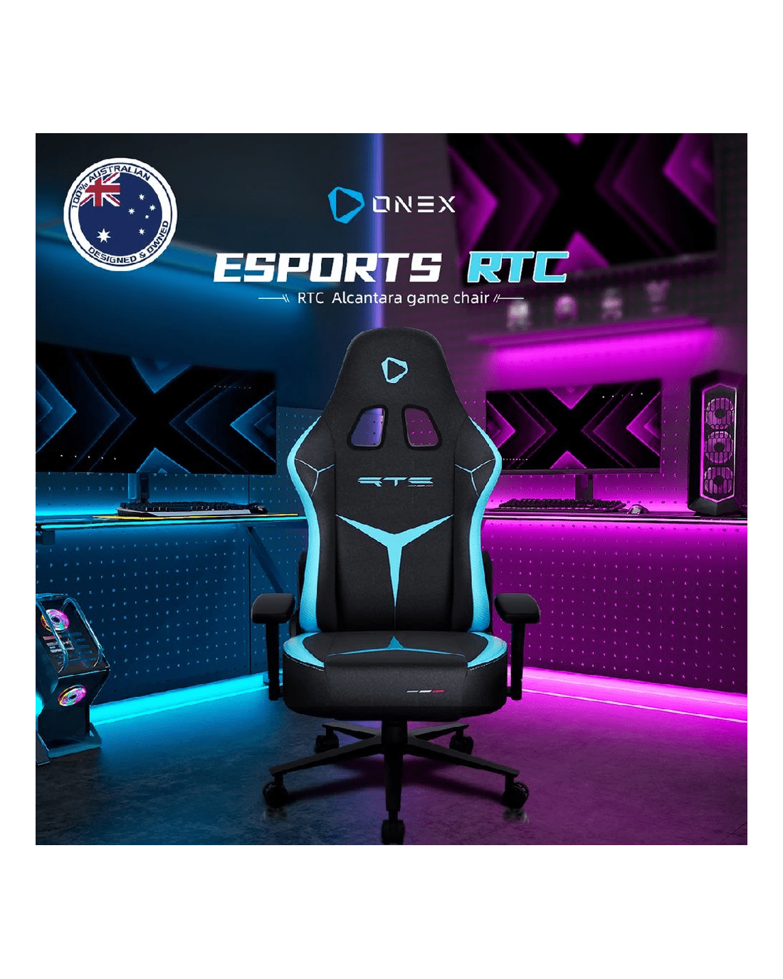 Sold by OfficeworksONEX RTC Embrace Large Alcantara Premium Gaming Chair Blue Gaming Chairs