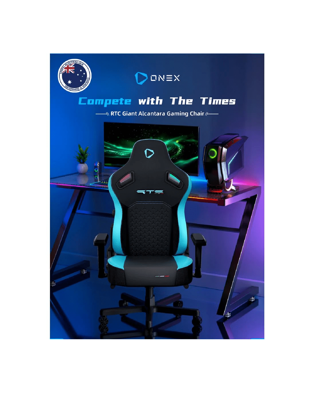 Sold by OfficeworksONEX RTC Giant Alcantara Gaming Chair Blue Gaming Chairs