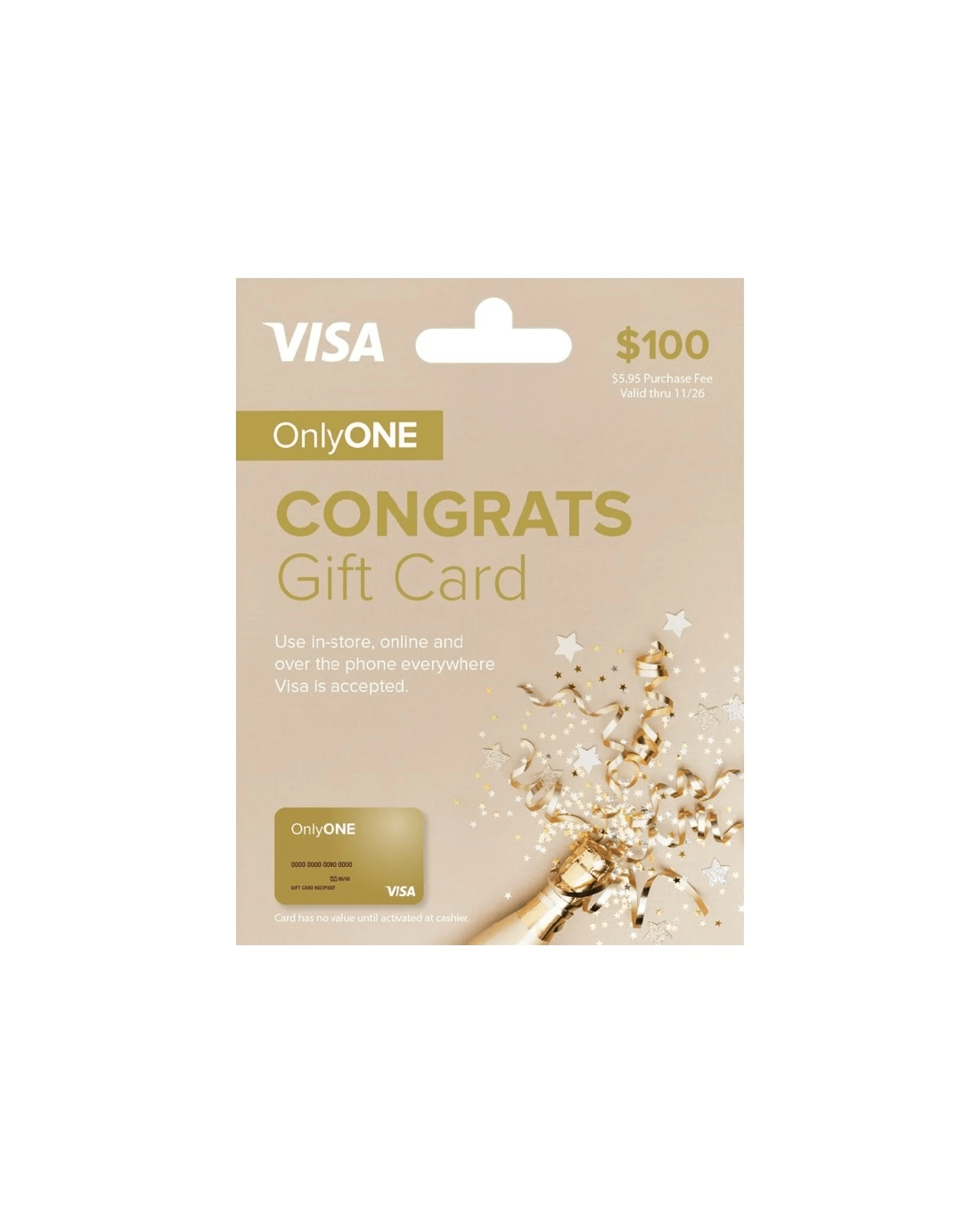 - Note: Card has no value until activated at cashier