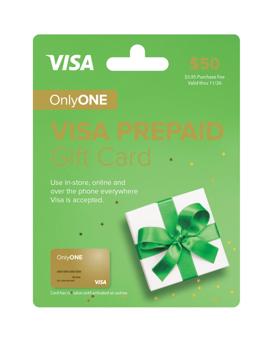 - Note: Card has no value until activated at cashier