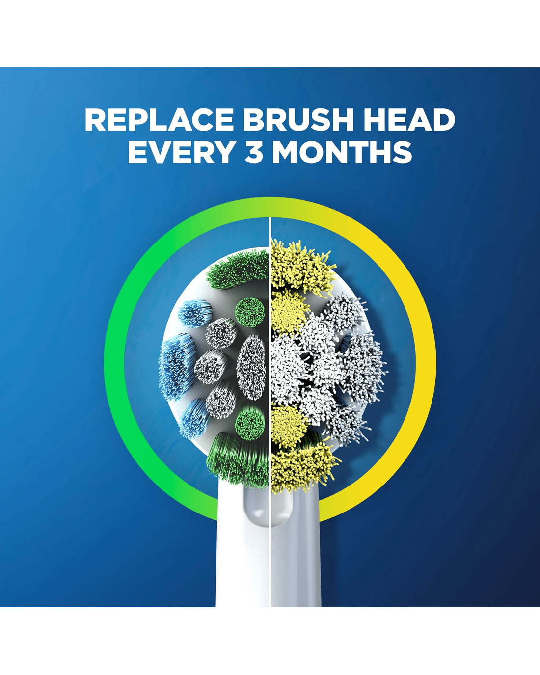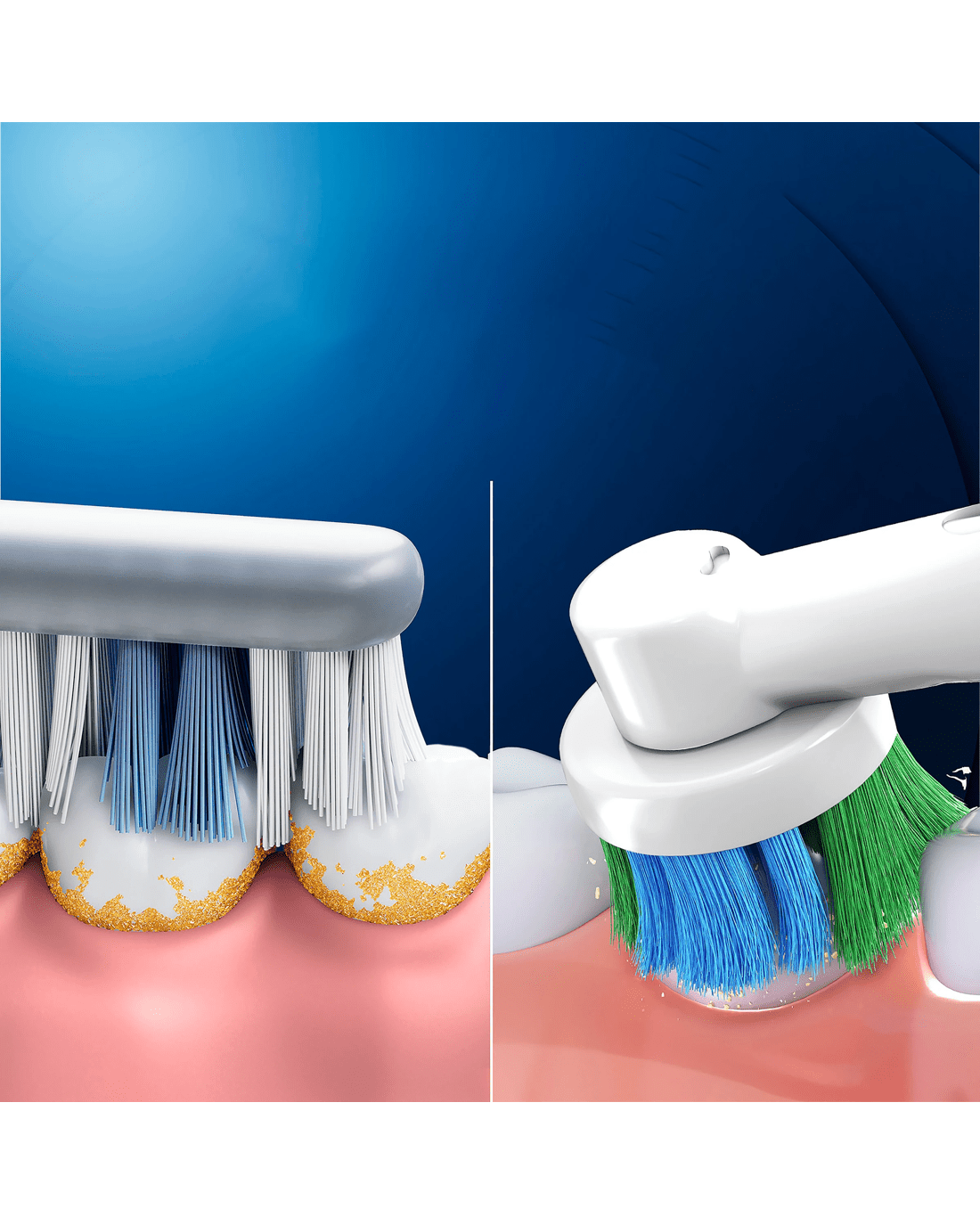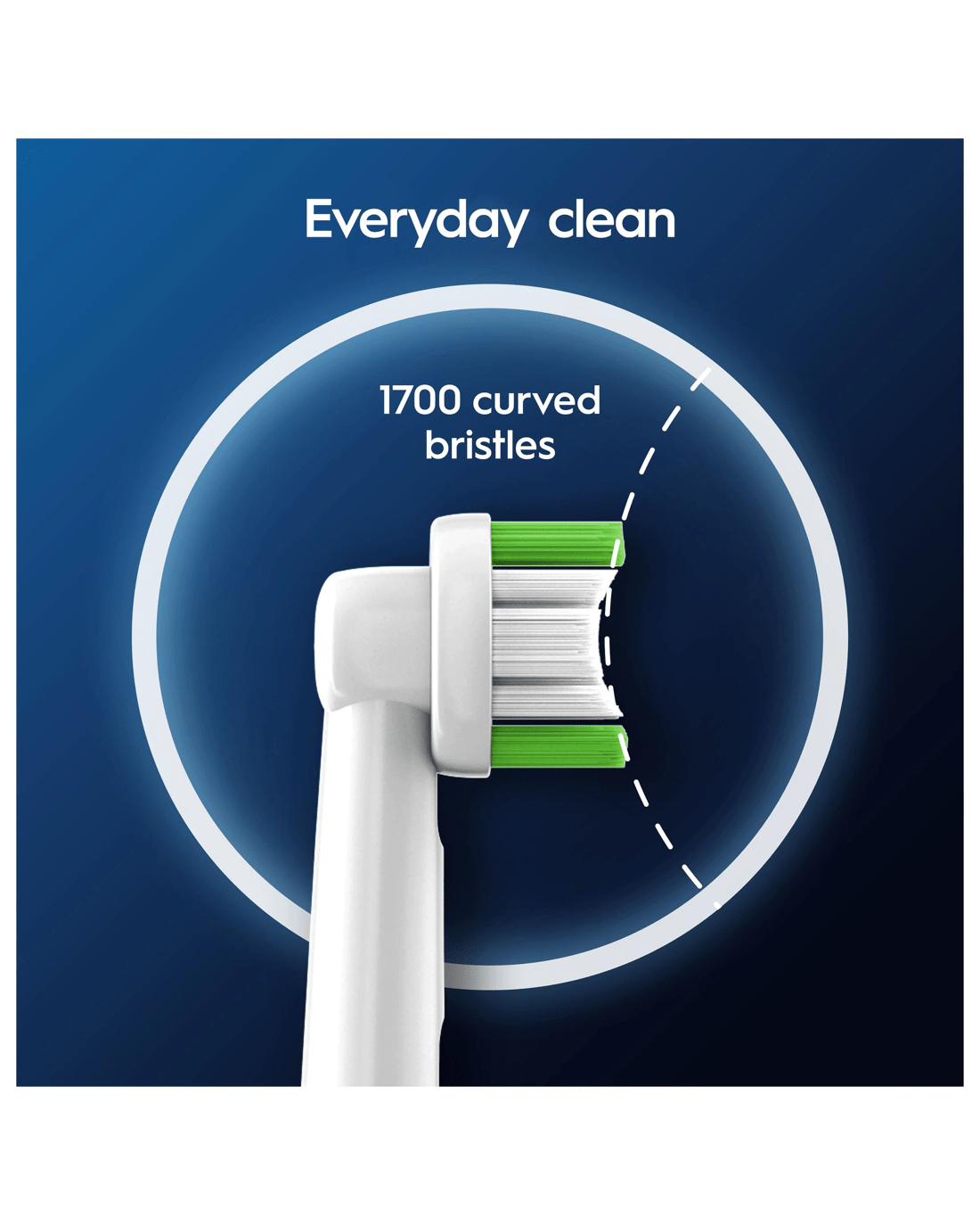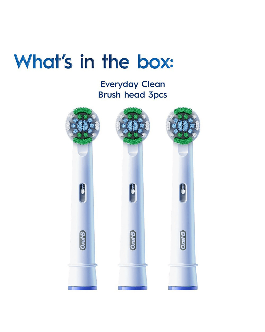 Oral-B Everyday Clean brush head reaches deep between teeth and cover more surface, leaving your whole mouth cleaner with healthier gums* vs regular manual toothbrush.