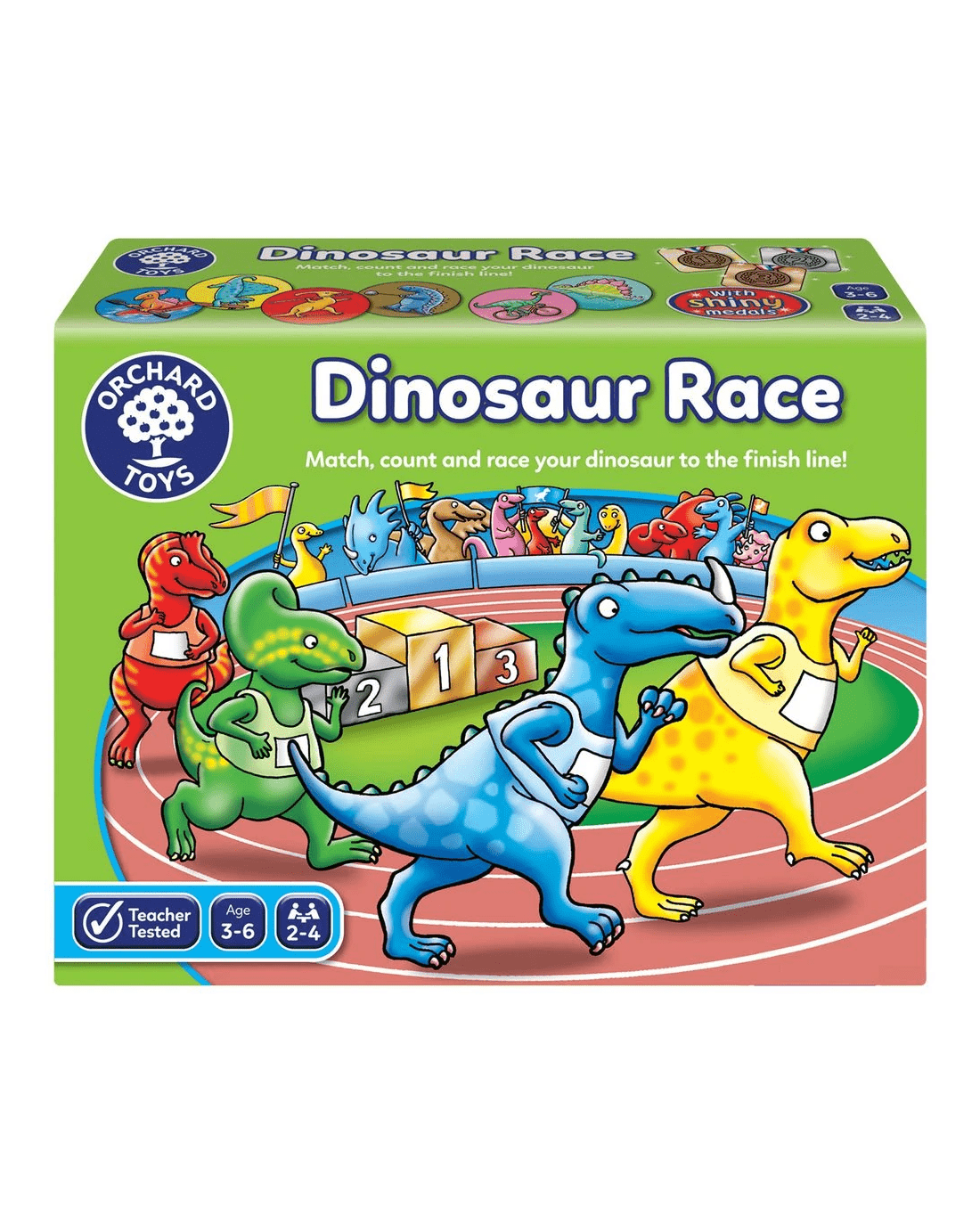 This Orchard Toys Dinosaur Race Game is an exciting game where all dinosaurs must move simultaneously towards the finish line. You can learn and develop math skills and have fun at the same time.